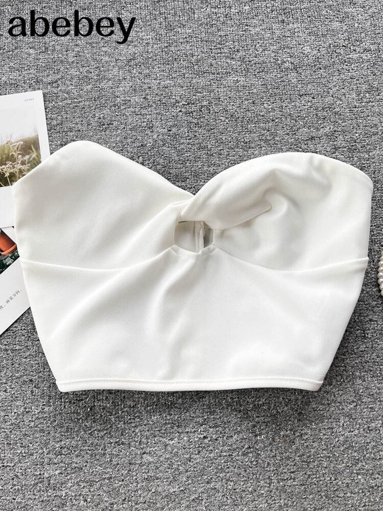 夏固体刺繍セクシーなタンクトップ下着背中の開いた透視女性ストラップレスミニタンクトップ サマー 夏物 ソリッドカラー Abe50742650206