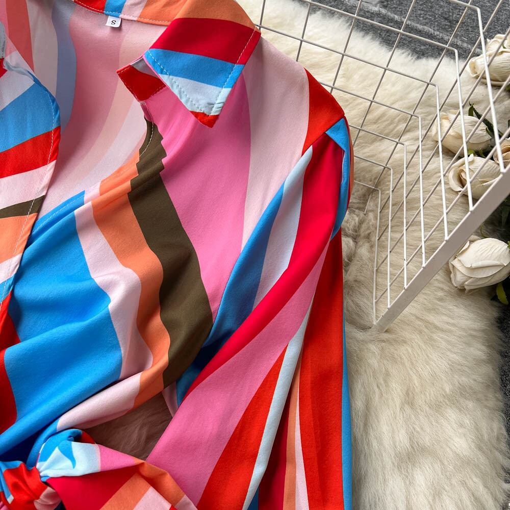 女性ターンダウン襟ボタンロングドレスフラワープリントシャツドレス春夏長袖ルーズドレス スプリング 春物 サマー 夏物 フラワーデザイン Abe83951055080