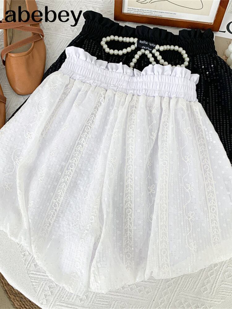 多用途 無地 ショートパンツ パールリボン スパンコール飾り ウエストゴム ハイウエスト ショートランタン ショートパンツ 夏 ハイウェスト エラスティック 伸縮 サマー 夏物 ショーツ ブルマー 真珠 ソリッドカラー Abe66923171411