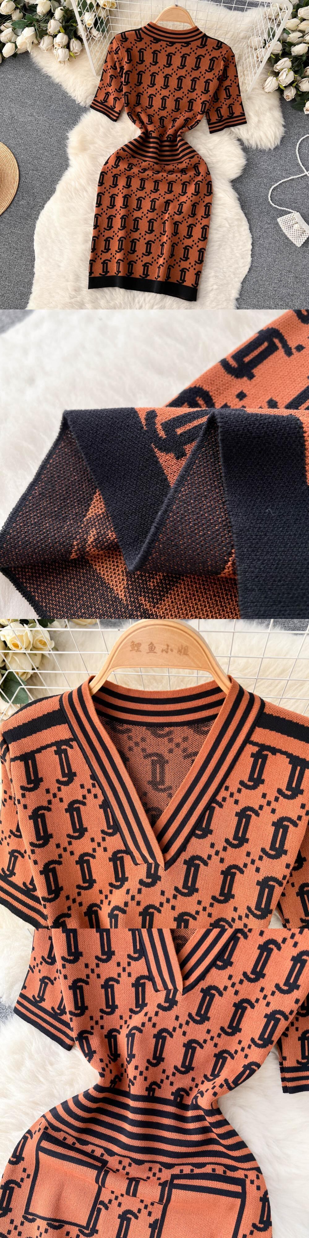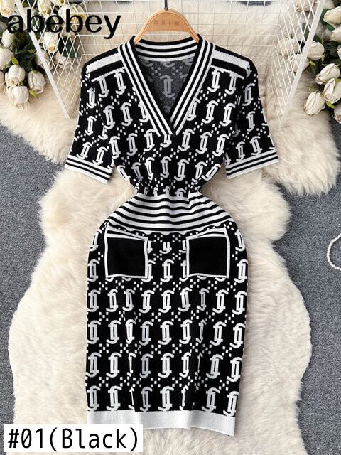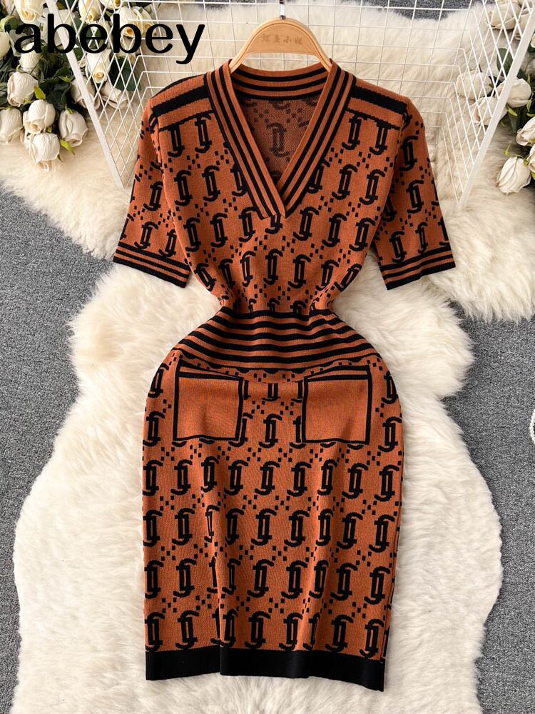 夏シースニットショートドレス女性 V ネック半袖弾性プリントドレスストリートビーチサンドレス ハーフスリーブ エラスティック 伸縮 サマー 夏物 Vネック Abe37999975131