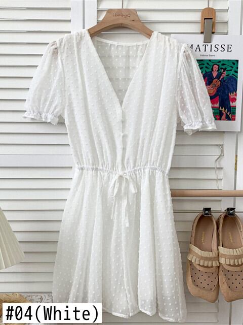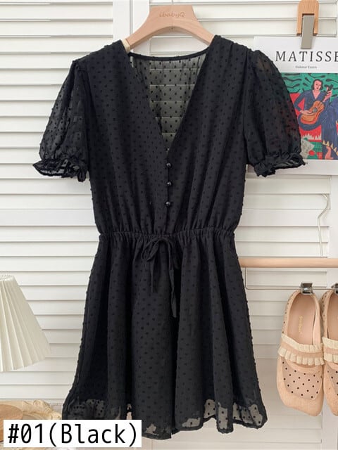 夏の万能Vネックパフスリーブロンパースシングルブレストウエスト包帯シフォンワイドレッグロンパース サマー 夏物 ワイドパンツ Abe24261156603