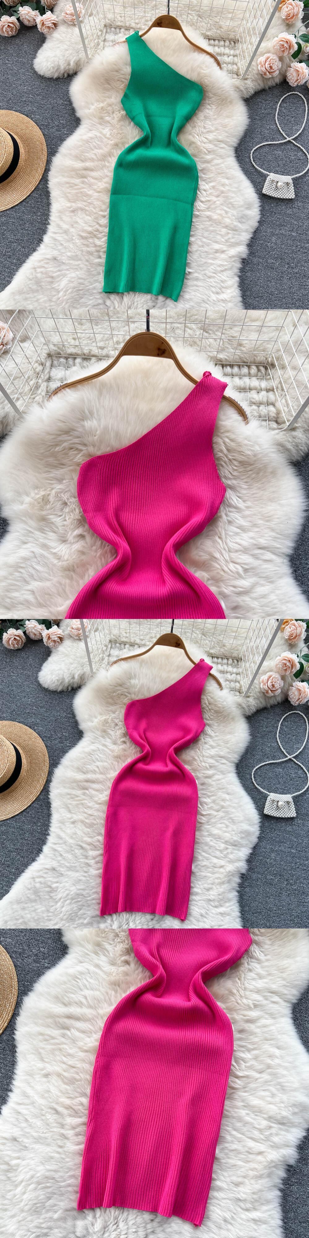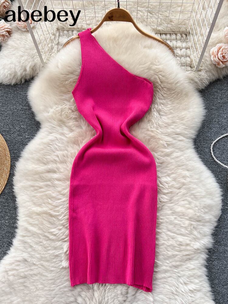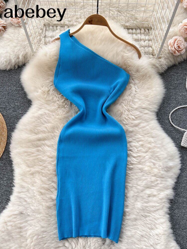 夏ニットドレス女性弾性ウエストシックなビーチスリムドレスフレンチスタイルのセクシーなミディサンドレス エラスティック 伸縮 サマー 夏物 Abe26903085779