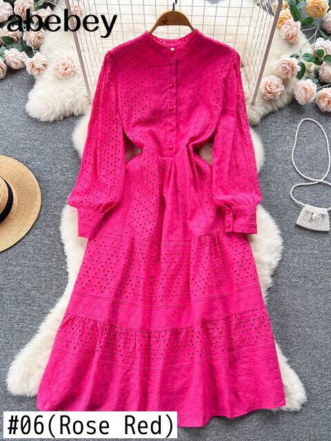 ブルー/ホワイト/グリーンサマーレース刺繍ドレス女性長袖ドレスパーティービーチマキシロングドレス 夏物 Abe61560725433