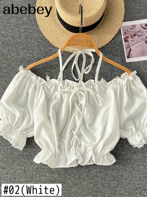 夏スウィートブラウス女性ショートパフスリーブパーティートップスソリッドセクシーなビーチブラウス 大人ガーリー キュート カジュアル サマー 夏物 ソリッドカラー Abe24872249714