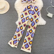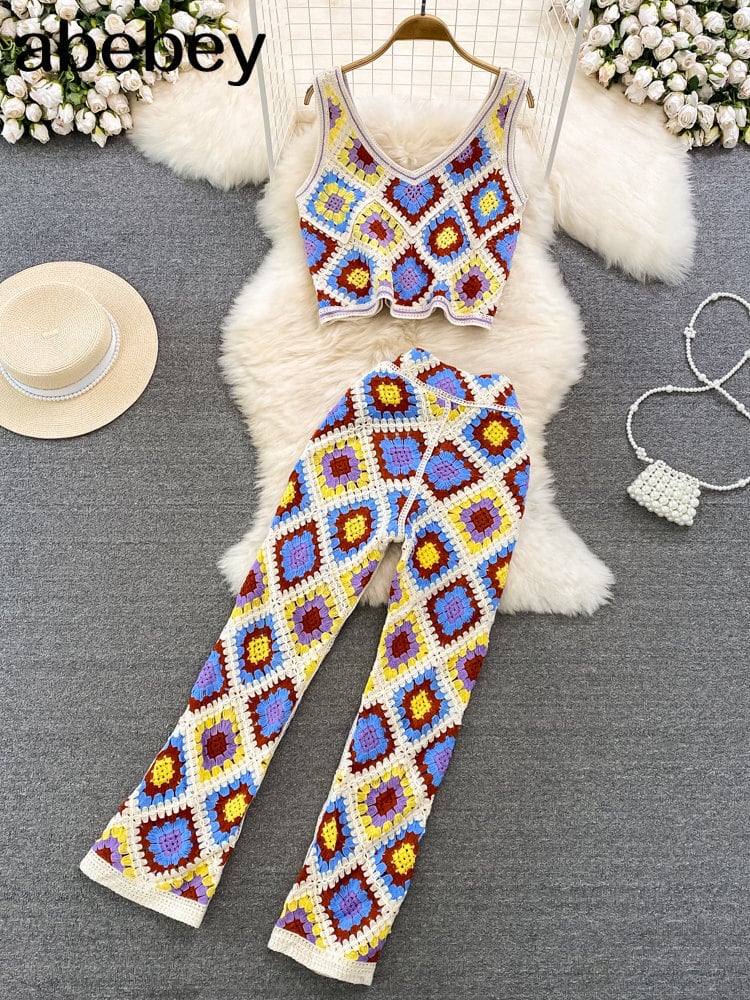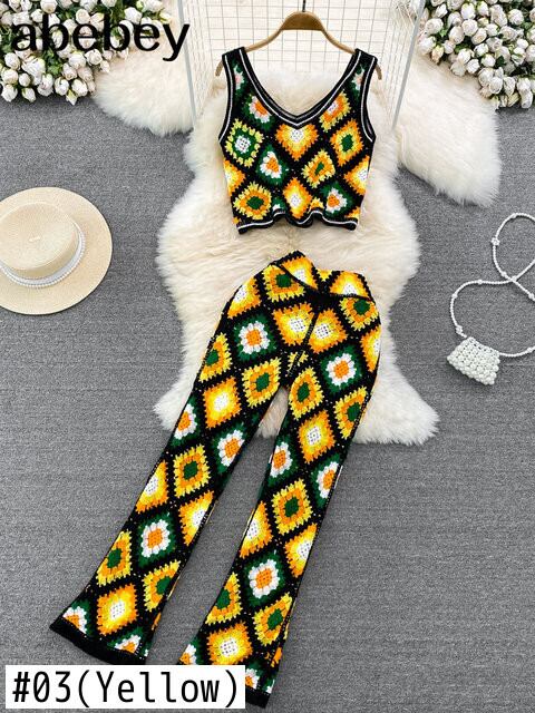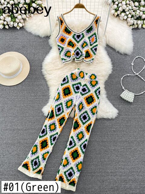 かぎ針編みのパトワークセクシーなツーピーススカートセット夏オフショルダートップ + 長ズボン中空アウト 2 ピースニット衣装女性 ロング サマー 夏物 Abe83399505918