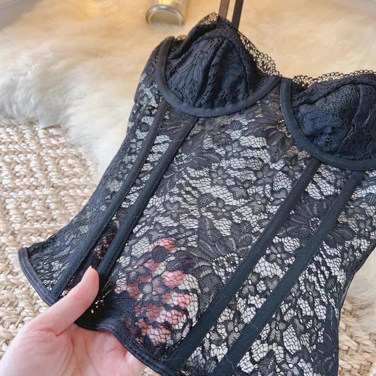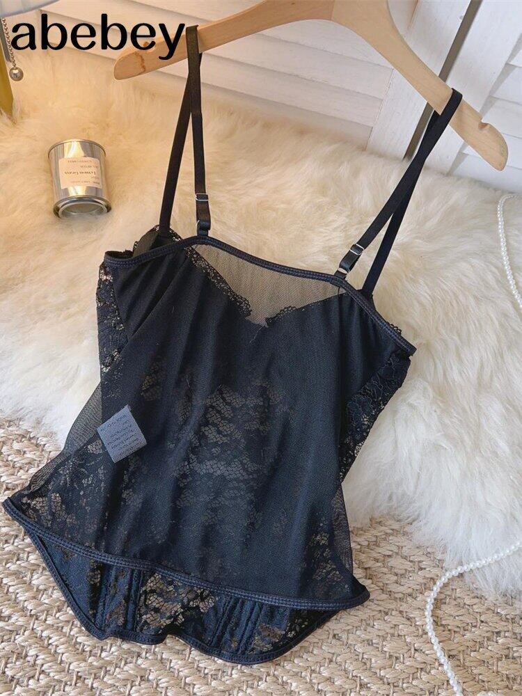 女性のチューブトップキャミソール大人無地レース中空アウトノースリーブバックレススパゲッティストラップクロップトップス夏キャミソール サマー 夏物 ソリッドカラー Abe78710333549