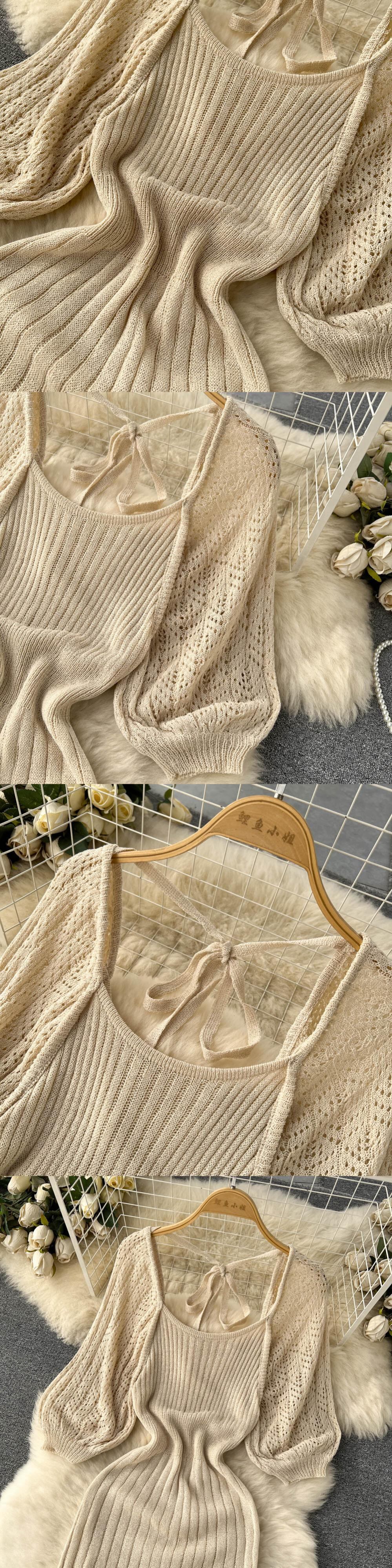 パーティー中空アウト ニット セット韓国キャミソール ドレス + レースアップ シース フラッシュ テール ドレス春セット スプリング 春物 Abe85192261864