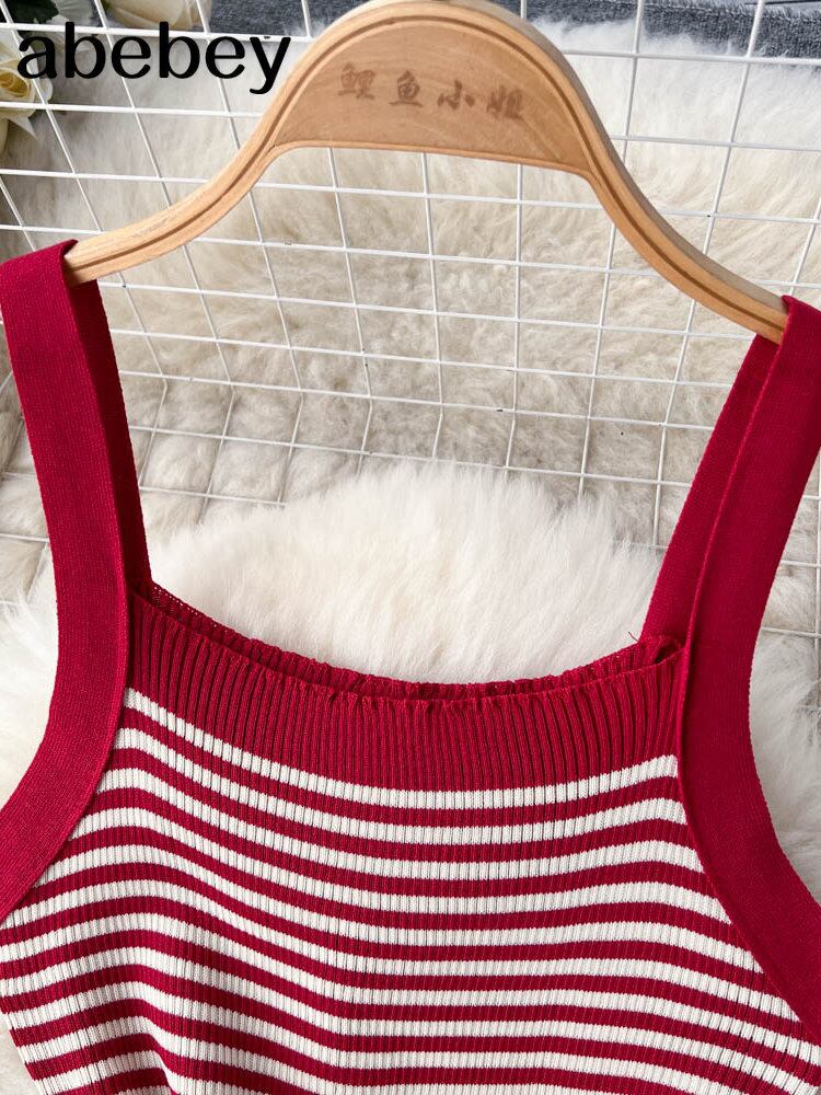 サマー ニット ビーチ ドレス スパゲッティ ストラップ バックレス スリム エラスティック サンドレス ストライプ ショート セクシー ドレス 伸縮 夏物 Abe60855228630