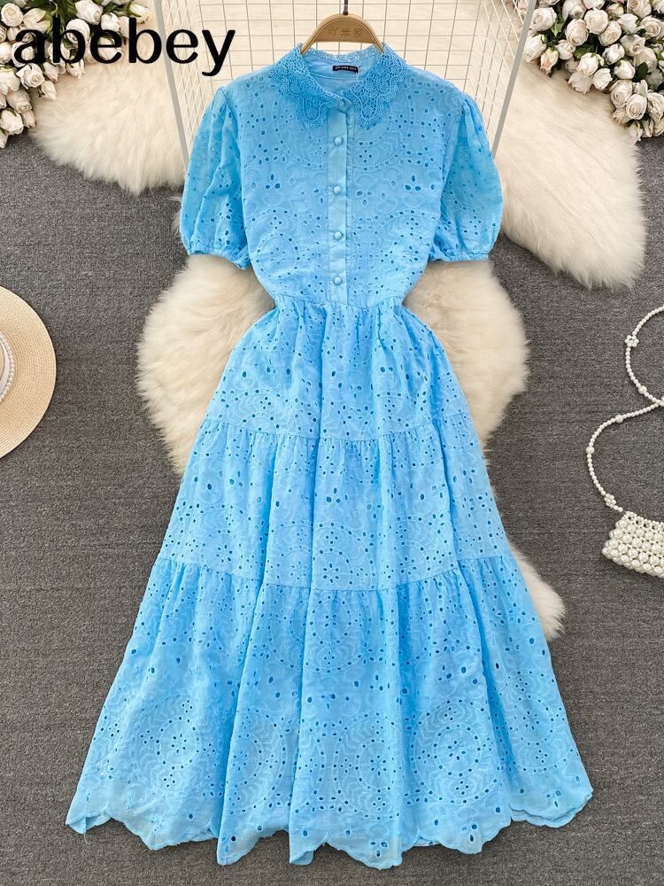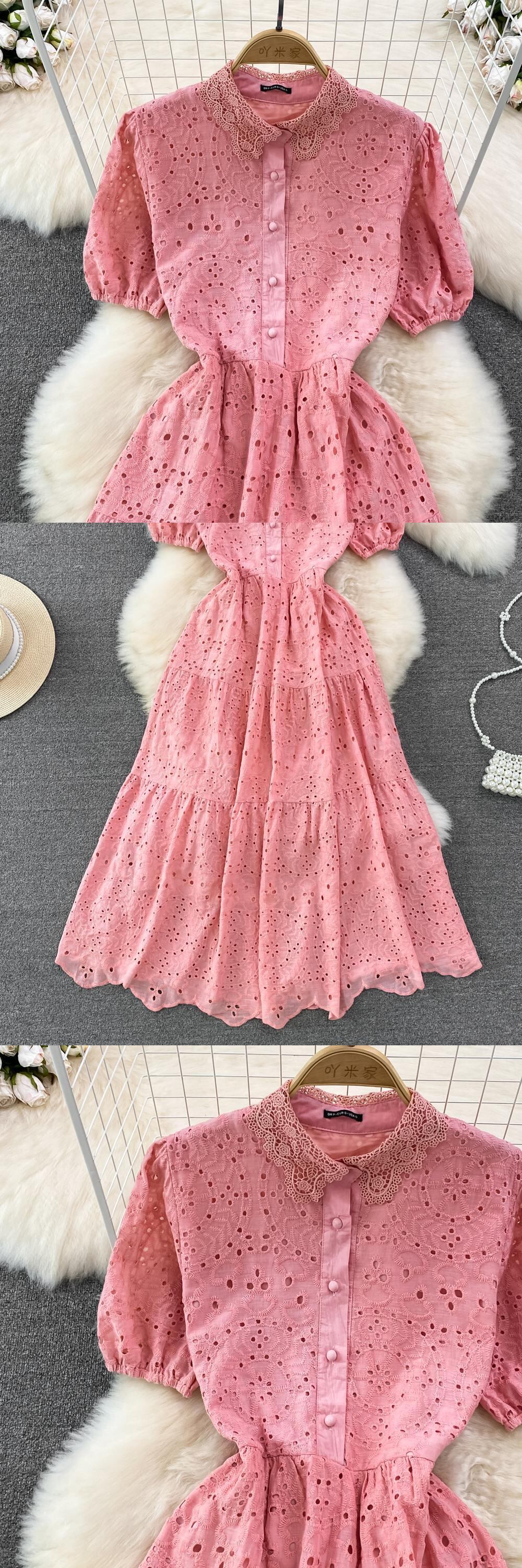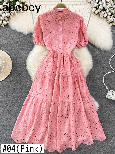 ホワイト/グリーン/ピンク夏レース刺繍ドレス女性半袖ドレスパーティービーチマキシロングドレス ショート ハーフスリーブ サマー 夏物 Abe96202225089