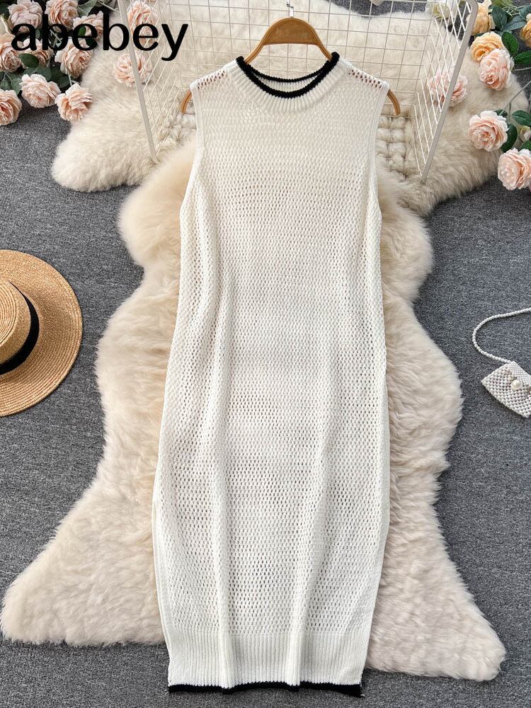 夏のセクシーな女性ビキニカバーアップかぎ針編みドレスノースリーブ o ネック中空アウトスリムフィット夏のビーチロングドレス サマー 夏物 Oネック Abe97078256251