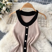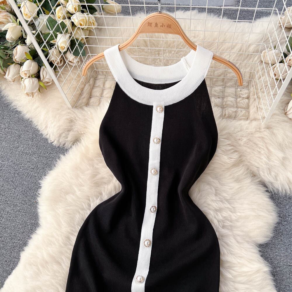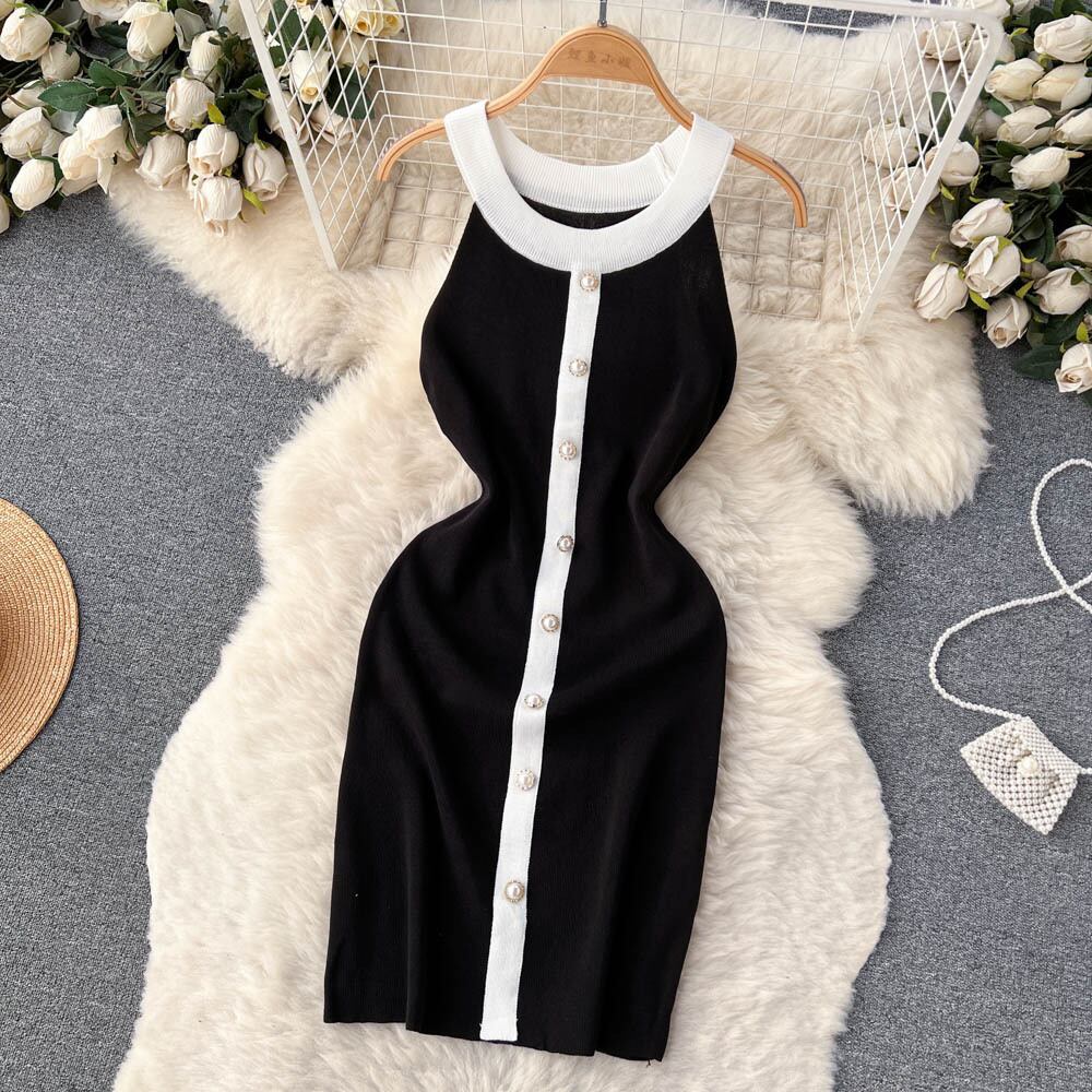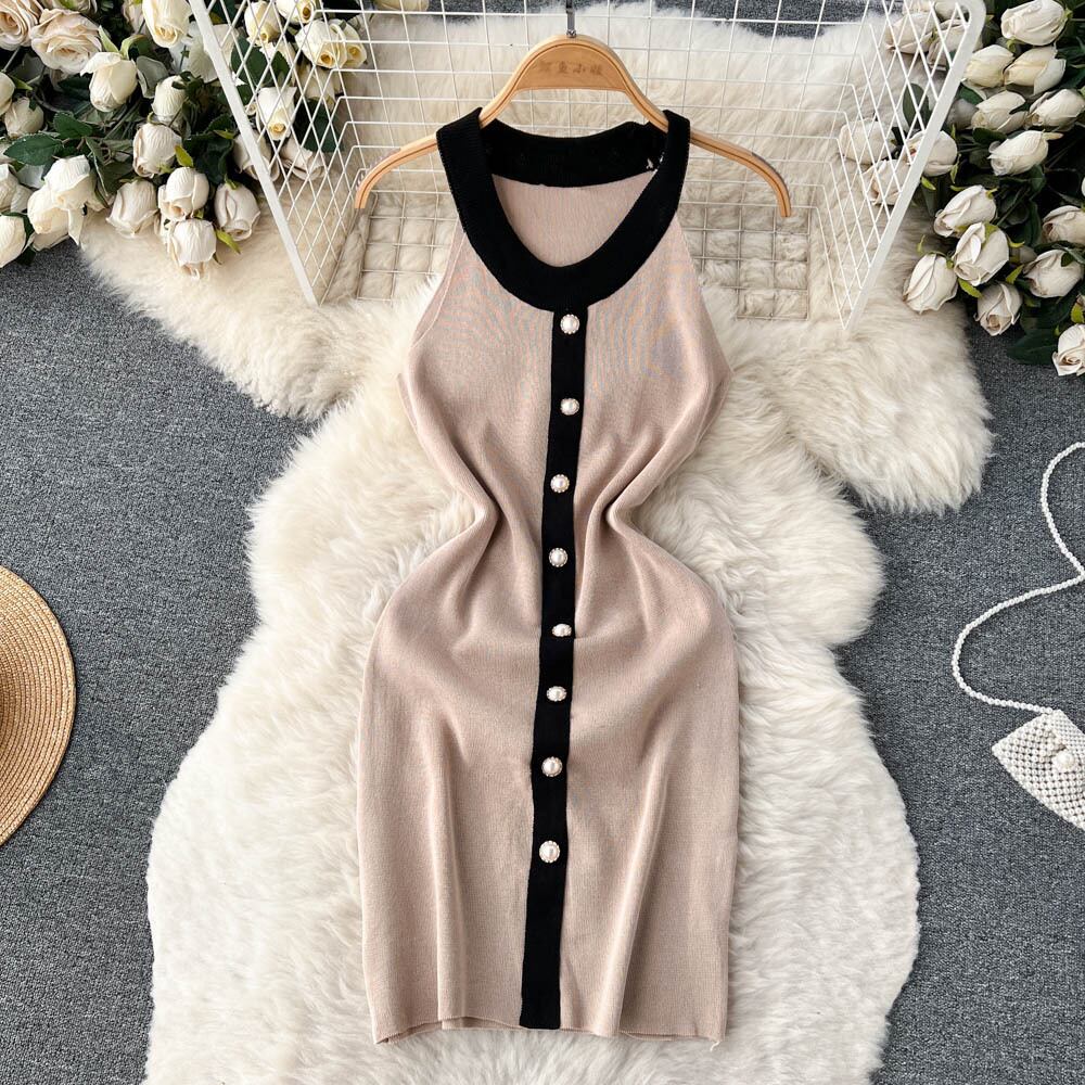 ホルターセーターバックレスセクシーサンドレスパッチワークオフィスレディシースショートドレスサマーストリートY2Kビーチニットドレス 夏物 会社 学校 通勤や通学にも Abe10953419835