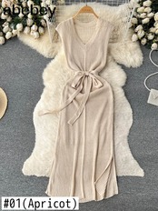夏の女性のドレスフリル無地 V ネックシースパーティーセクシーなロング Fashtail ドレス ラッフル サマー 夏物 Vネック ソリッドカラー Abe51915942762