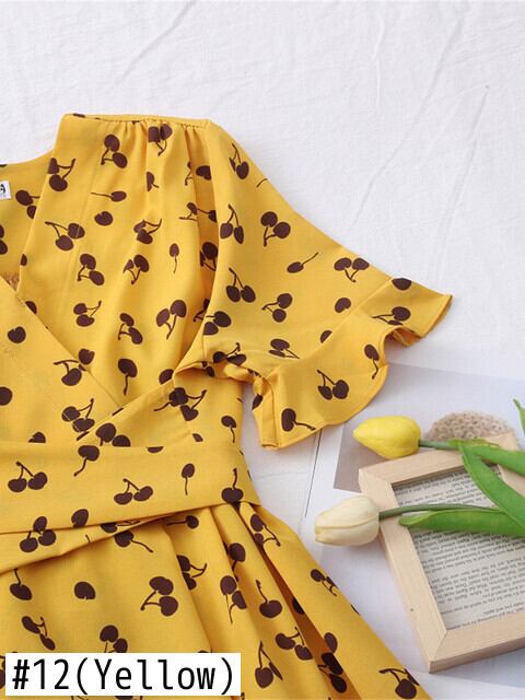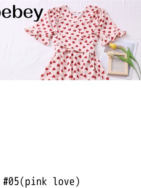 春夏女性スウィートオールマッチドレスチェリーラブプリント V ネックドレスウエストストラップミッドレングスドレス 大人ガーリー キュート カジュアル スプリング 春物 サマー 夏物 Vネック Abe20915196129
