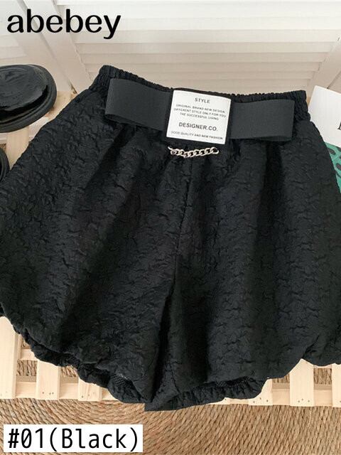 多用途 無地 ショートパンツ チェーン飾り ハイウエスト プリーツ ゆったり カジュアル ワイドレッグ ショートパンツ 夏 ハイウェスト サマー 夏物 ショーツ ブルマー ワイドパンツ ソリッドカラー