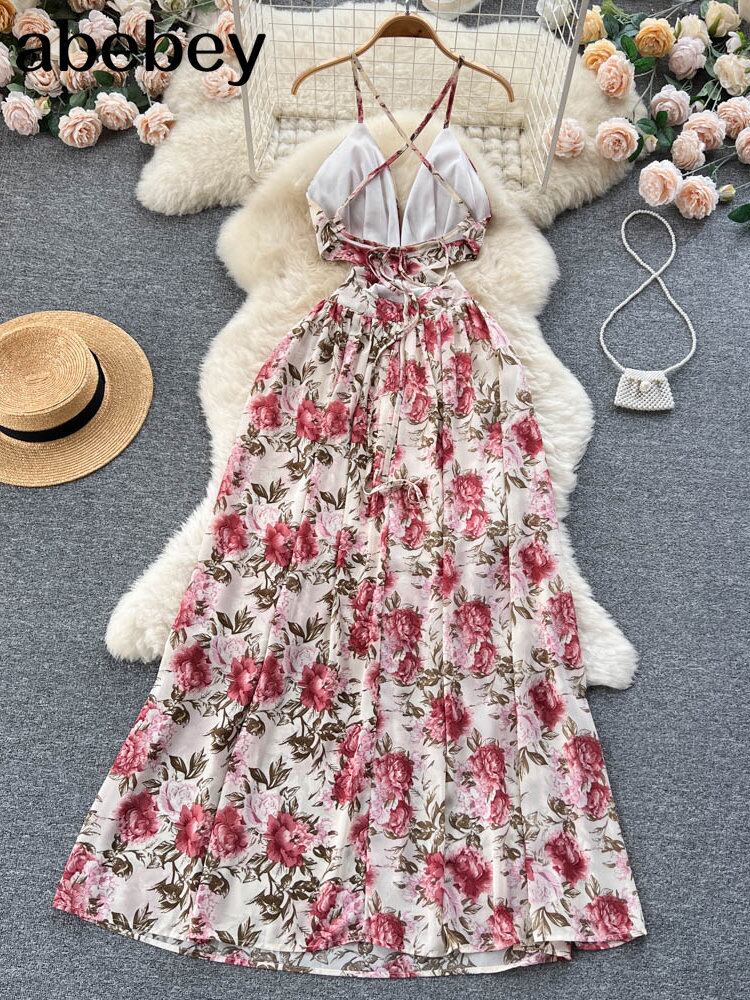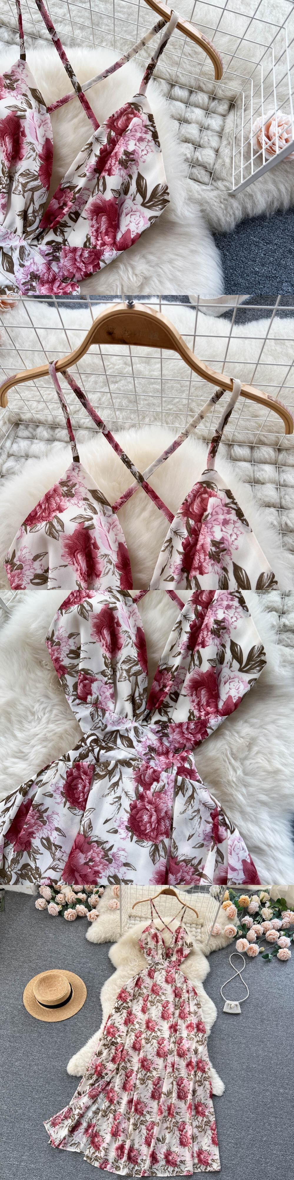 スタイルフローラルサンドレスストラップオフショルダー弾性 A ライン甘いビーチマキシロングドレス エラスティック 伸縮 大人ガーリー スウィート キュート カジュアル 花柄 Aライン