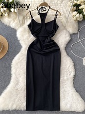 中空アウトホルターイブニングドレス夏の Y2K バックレスオフショルダースリムミディロングパーティーセクシーなドレス サマー 夏物