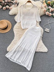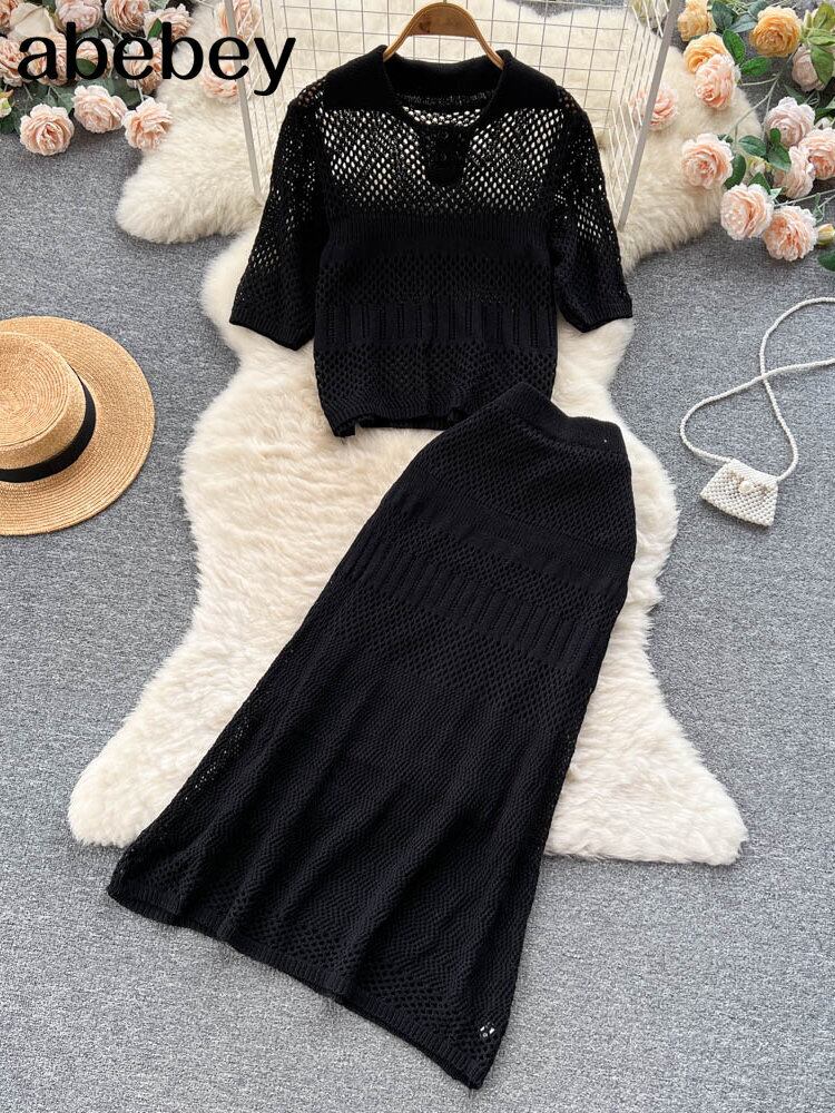 ニットツーピースセットサイドスプリット半袖ウエストスカートスーツ春夏オフィススーツ ショート ハーフスリーブ スプリング 春物 サマー 夏物 会社 学校 通勤や通学にも