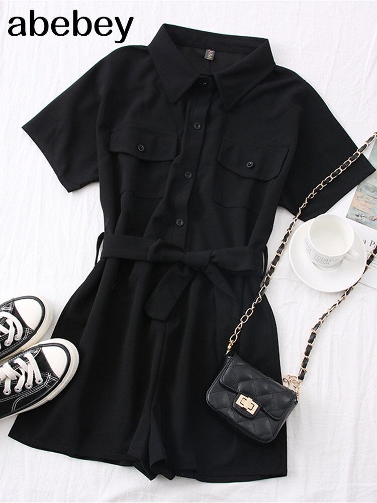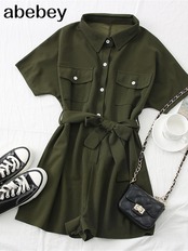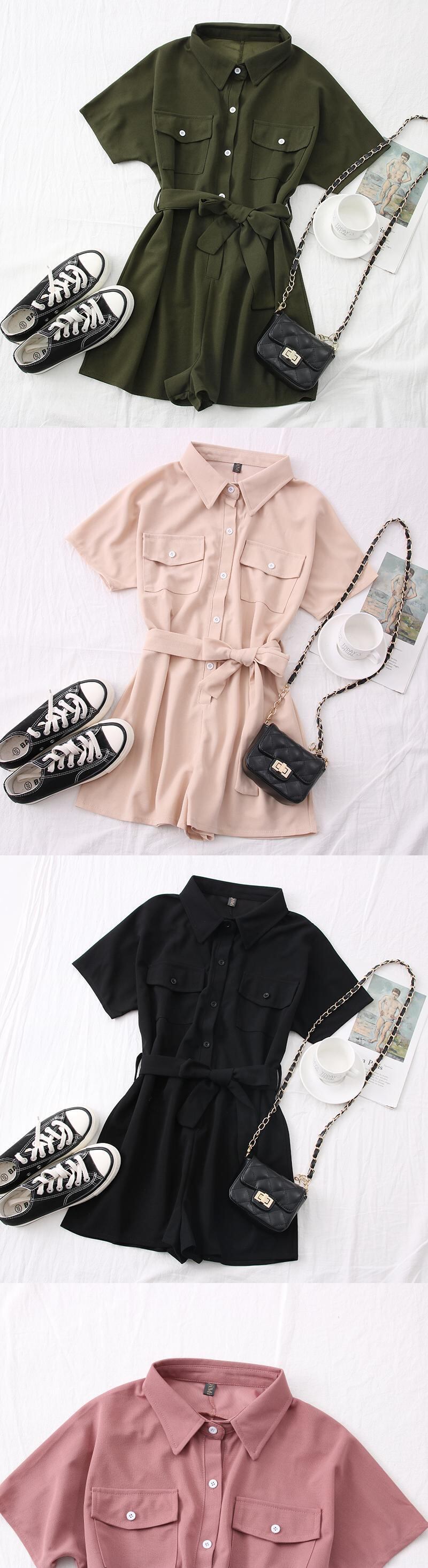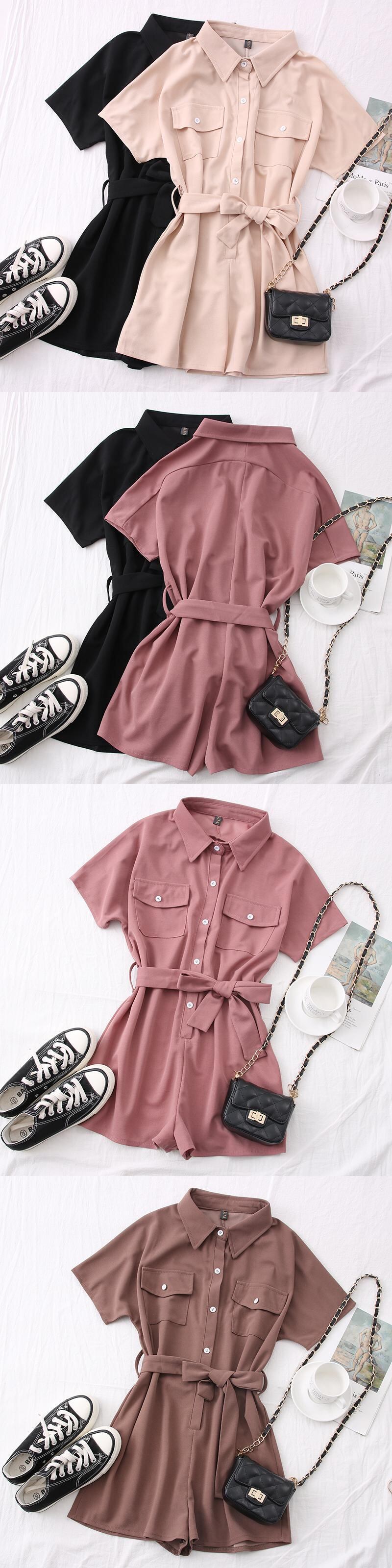 サマーエイブル オールマッチ ポロネック ジャンプスーツ ウエストクロージング 包帯 半袖 ジャンプスーツ ワイドレッグパンツ カーゴパンツ ショート ハーフスリーブ 夏物 ワイドパンツ