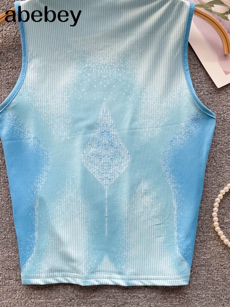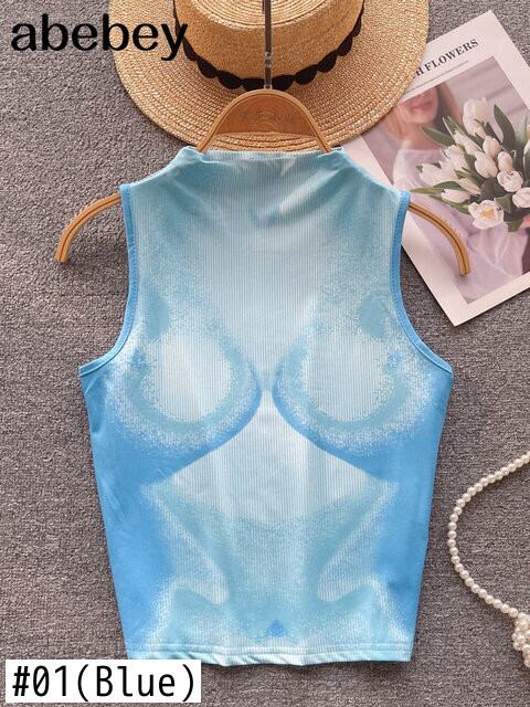 プリントクロップトップタンクトップノースリーブ夏 O ネックベーシックストリートウェア Y2K Tシャツ サマー 夏物 Oネック