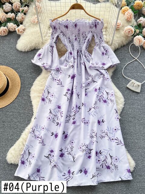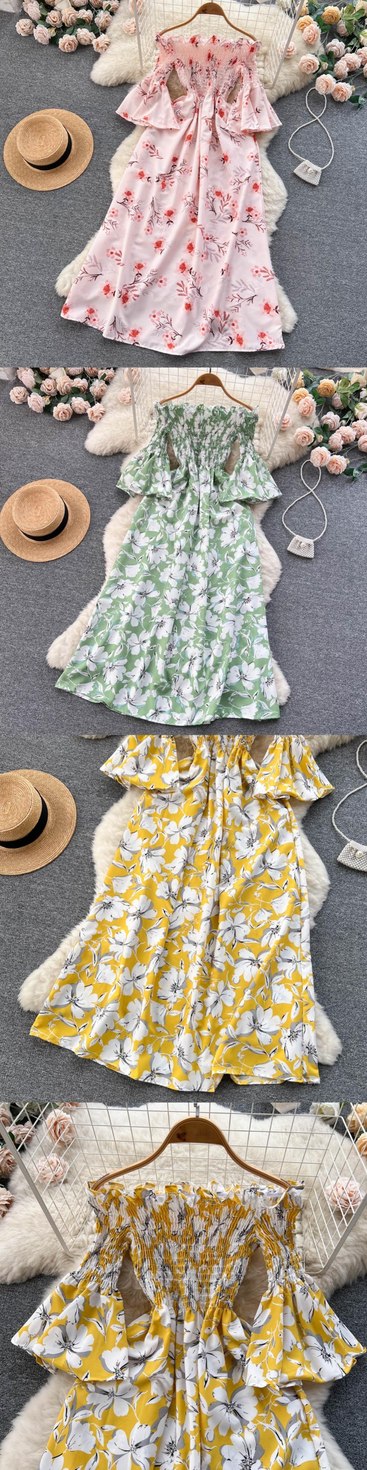 夏の花フリルシフォンロングドレスのセクシーなスラッシュネックオフショルダーフレアスリーブウエスト A ラインビーチ Vestidos サマー 夏物 花柄 Aライン