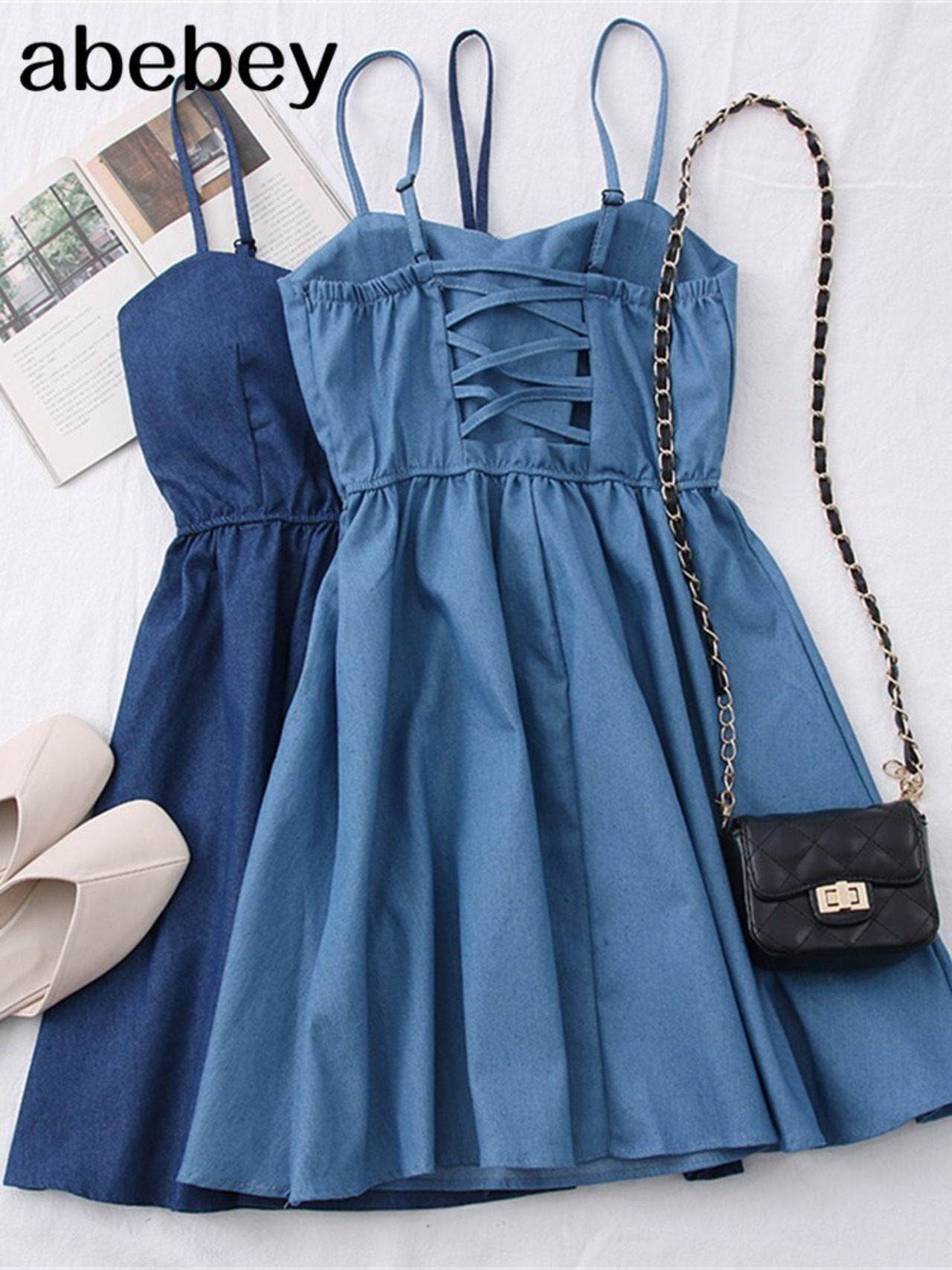 春夏レディースオールマッチスリングドレスクロスオフバックハイウエストスリムショートDress1 ハイウェスト スプリング 春物 サマー 夏物