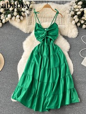 夏のローブドレス V ネックロングパーティードレスセクシーなタンク背中スパゲッティストラップマキシホリデー Vestidos サマー 夏物 Vネック
