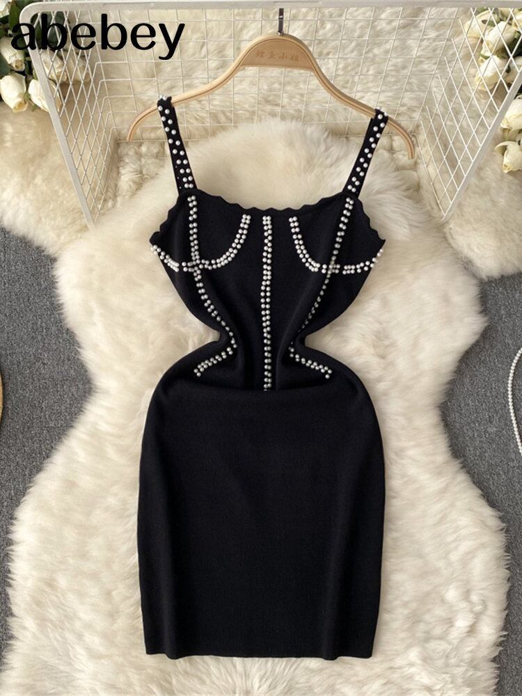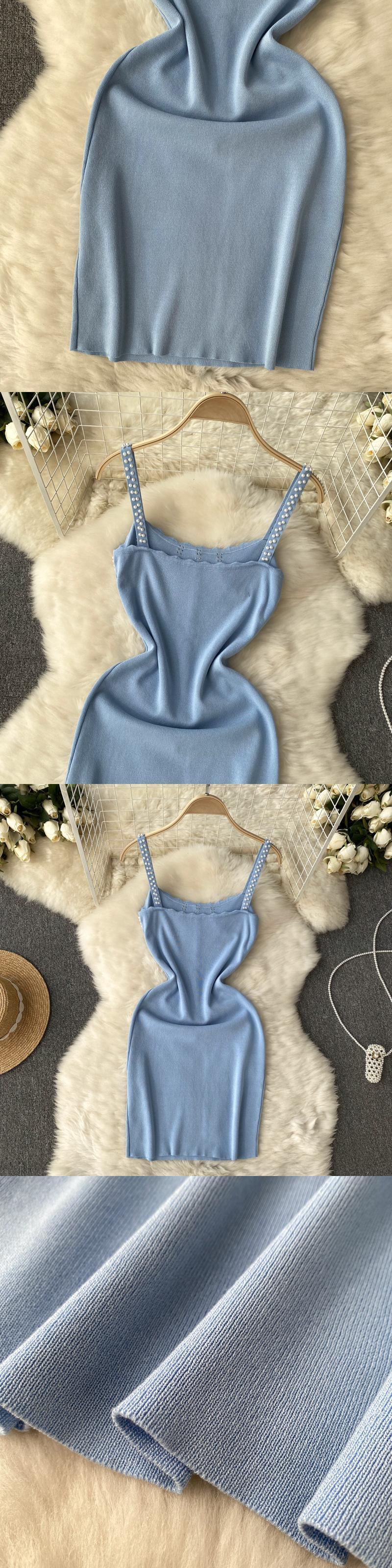 スパゲッティストラップセクシーなビーチドレスストライプショートドレス夏弾性ウエスト背中の開いた Hotsweet スリムニットドレス エラスティック 伸縮 大人ガーリー スウィート キュート カジュアル サマー 夏物