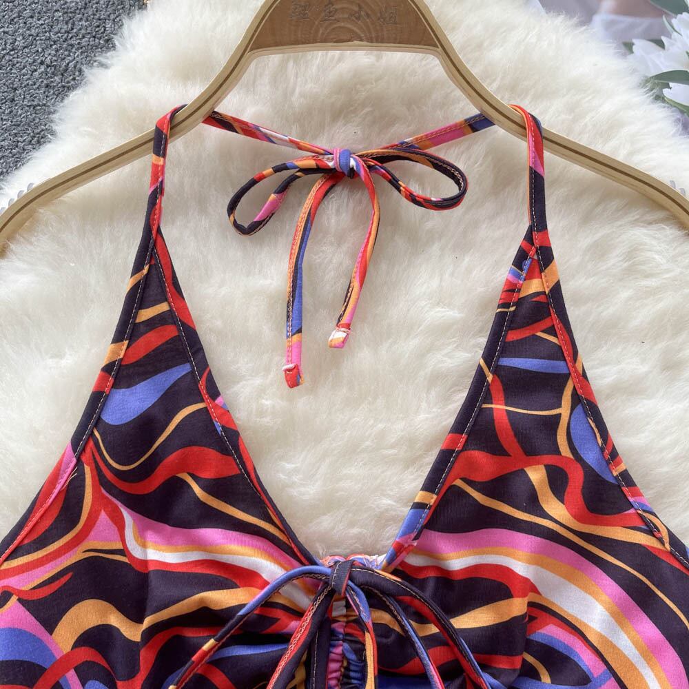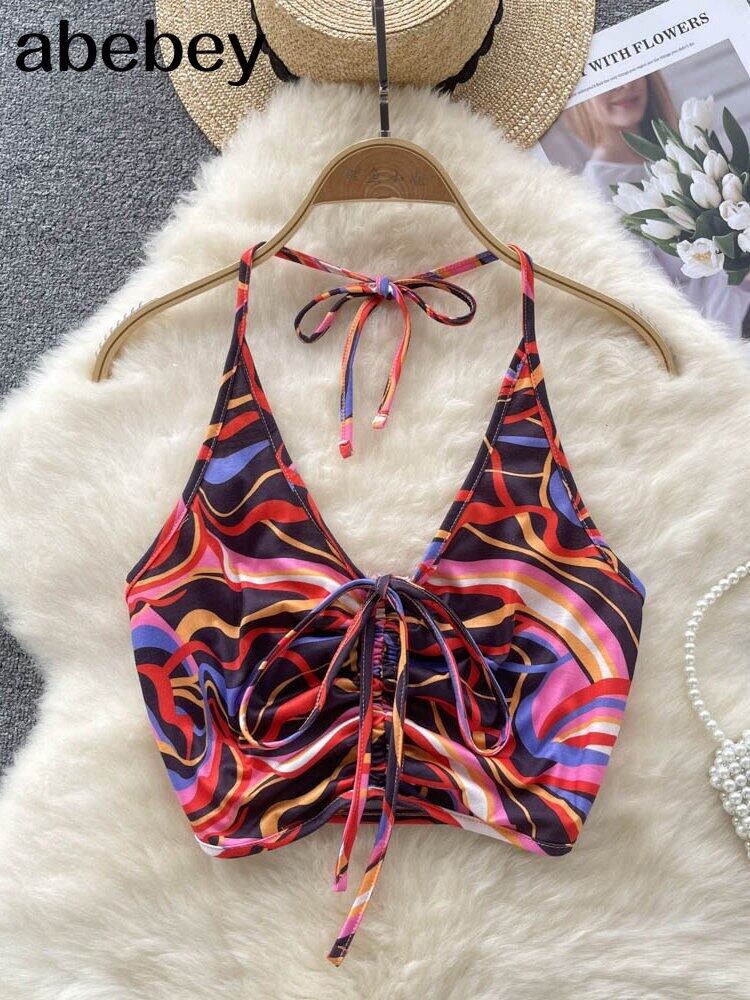 バックレスサテンスリムスリングタンクトップ V ネック弾性ウエストストラップ弓甘いトップショートセクシーなキャミソール リボン エラスティック 伸縮 大人ガーリー スウィート キュート カジュアル Vネック