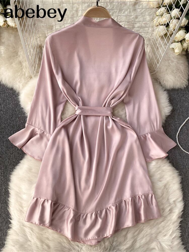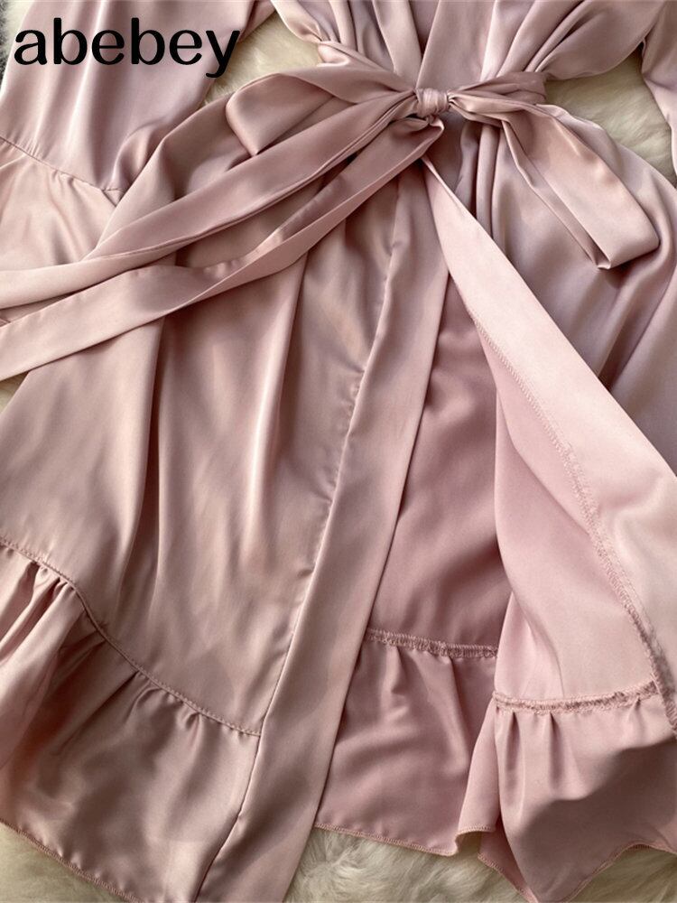 夏のピンクのドレス自由奔放に生きるスタイルのビーチ ドレス長袖 V ネック無地 A ライン パーティー ドレス サンドレス Vestidos ロング サマー 夏物 Vネック Aライン ソリッドカラー