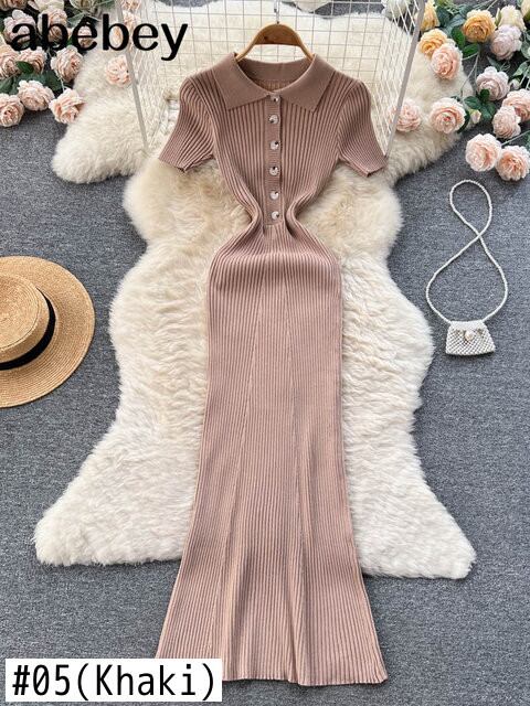 シックなセクシーなかぎ針編みボディコンミディドレス V ネックターンダウン襟スリムラップペンシルドレス Vestido Y2k Vネック