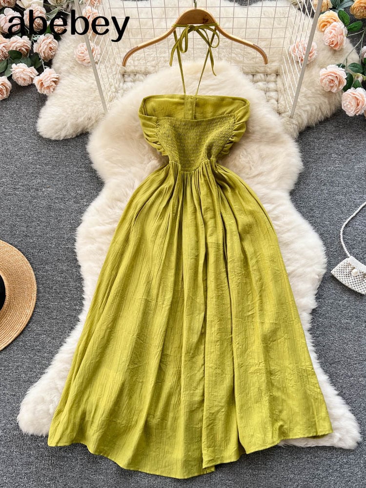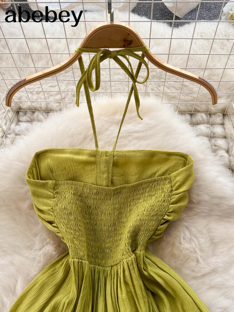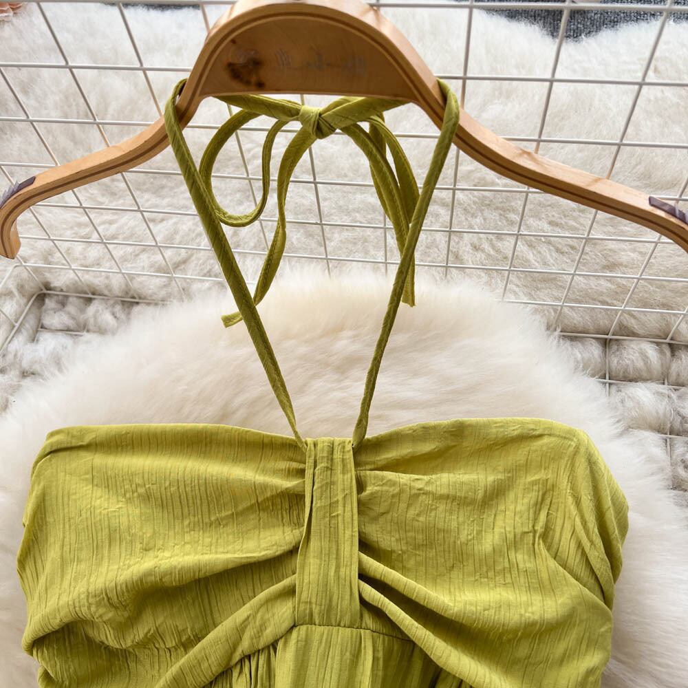 フランスレトロなグリーンパッチワークサスペンダー Vestidos 夏気質優しいローブスリムウエスト痩身ドレス サマー 夏物