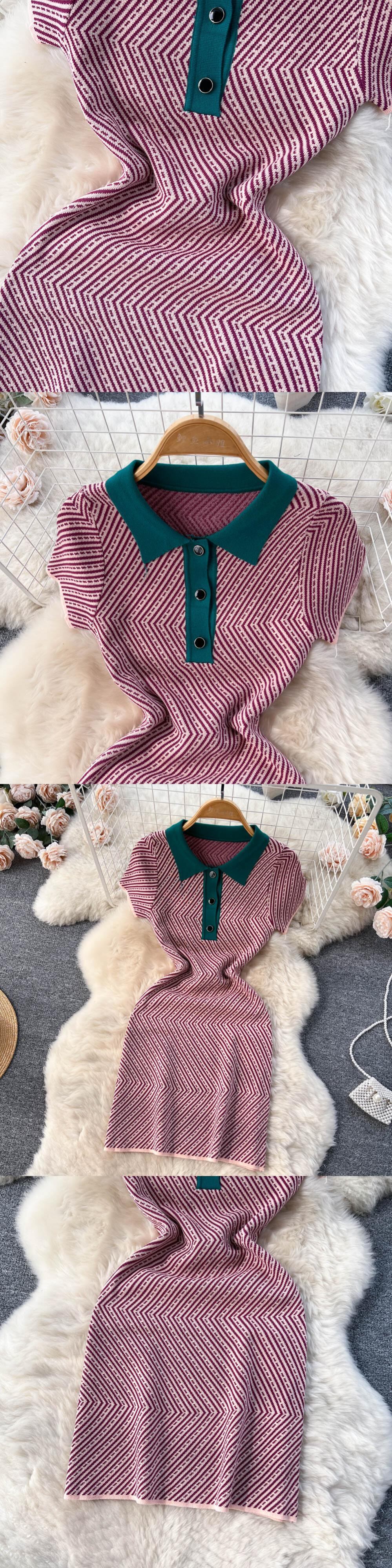 ニットペンシルドレスパッチワーク半袖弾性スリムシースドレス夏シックなストリートショートドレス ハーフスリーブ エラスティック 伸縮 サマー 夏物