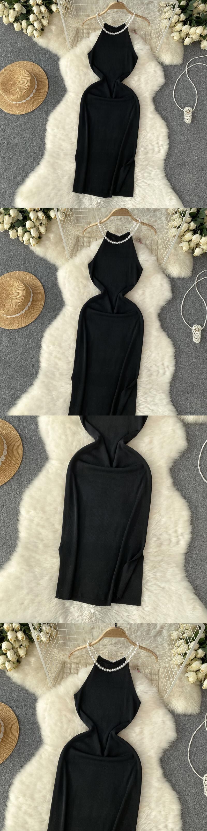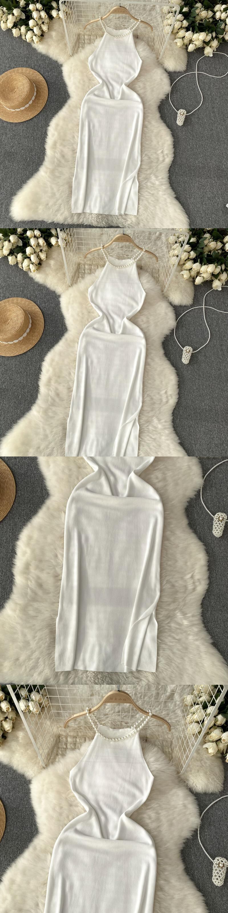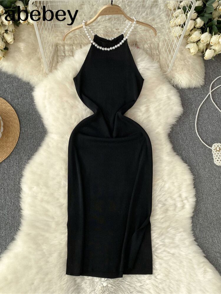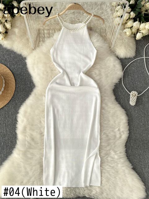 ホルター サマー ニット セクシー ストラップ ドレスタンク Elatic ウエスト ボディコン サンドレス ビーチ背中開いたロング ドレス 夏物