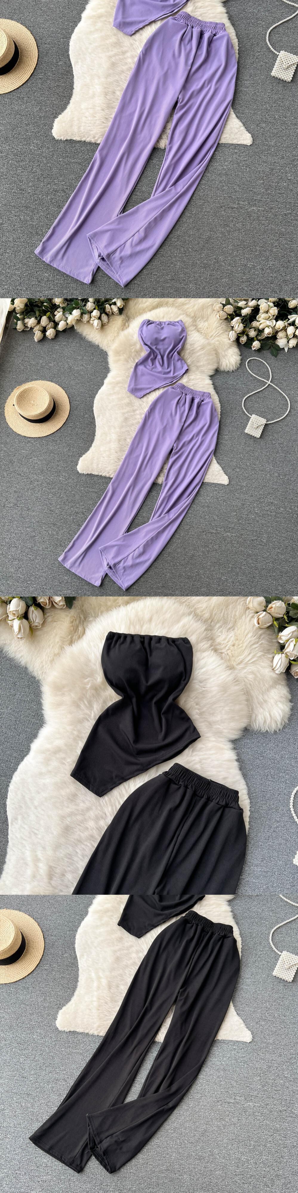 ソリッドセクシーツーピースセット夏ストラップレススリムキャミソール + ワイドレッグロングパンツセットストリートツーピーススーツ サマー 夏物 ワイドパンツ ソリッドカラー