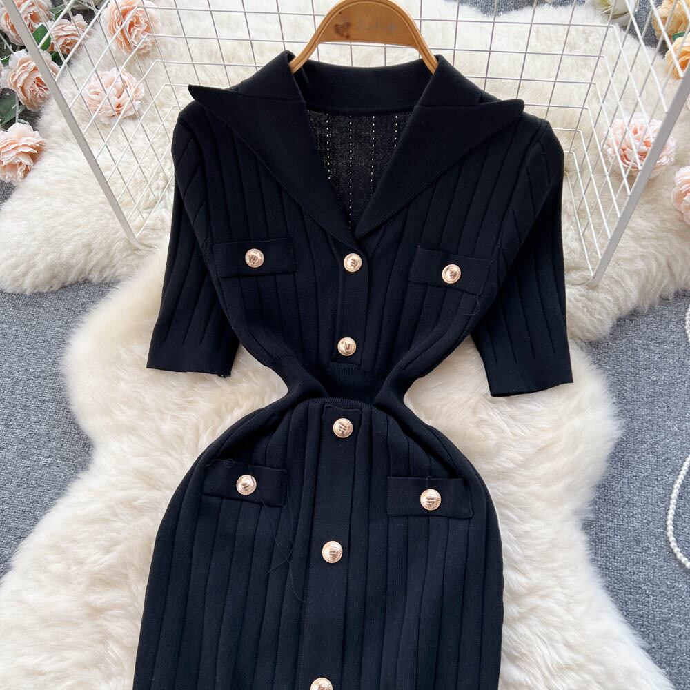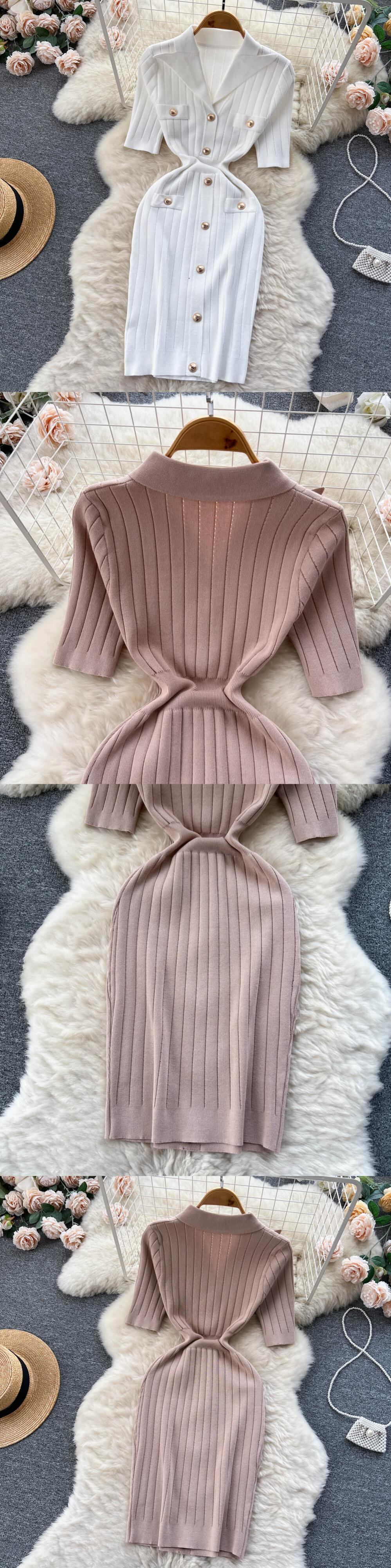 夏ストライプボディコンロングドレス V ネック半袖ビーチミディドレスストリートスリムニットドレス ショート ハーフスリーブ サマー 夏物 Vネック