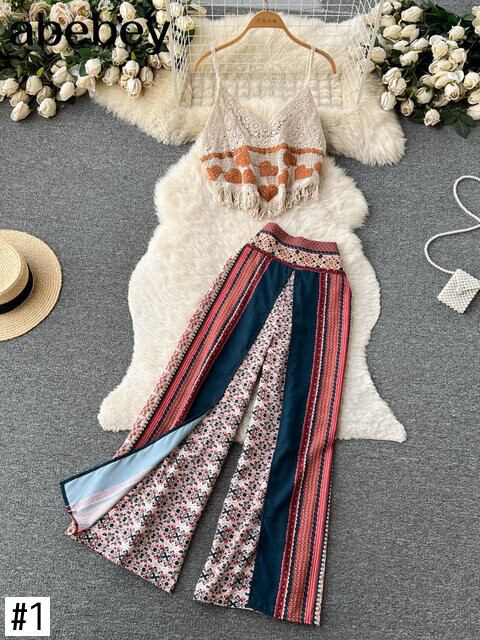 中空アウト夏ビーチスーツ電話ノースリーブホルターキャミソールトップス + 長ズボンセクシーツーピースセット ロング サマー 夏物