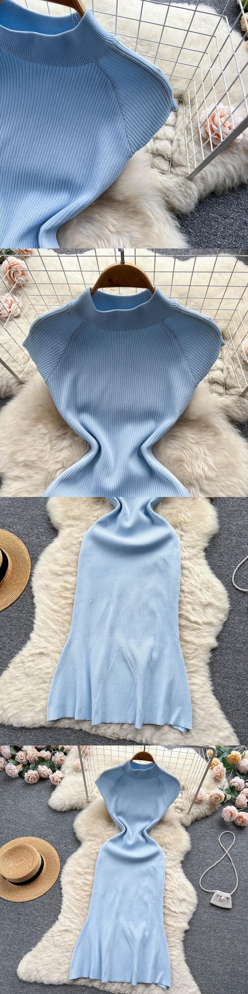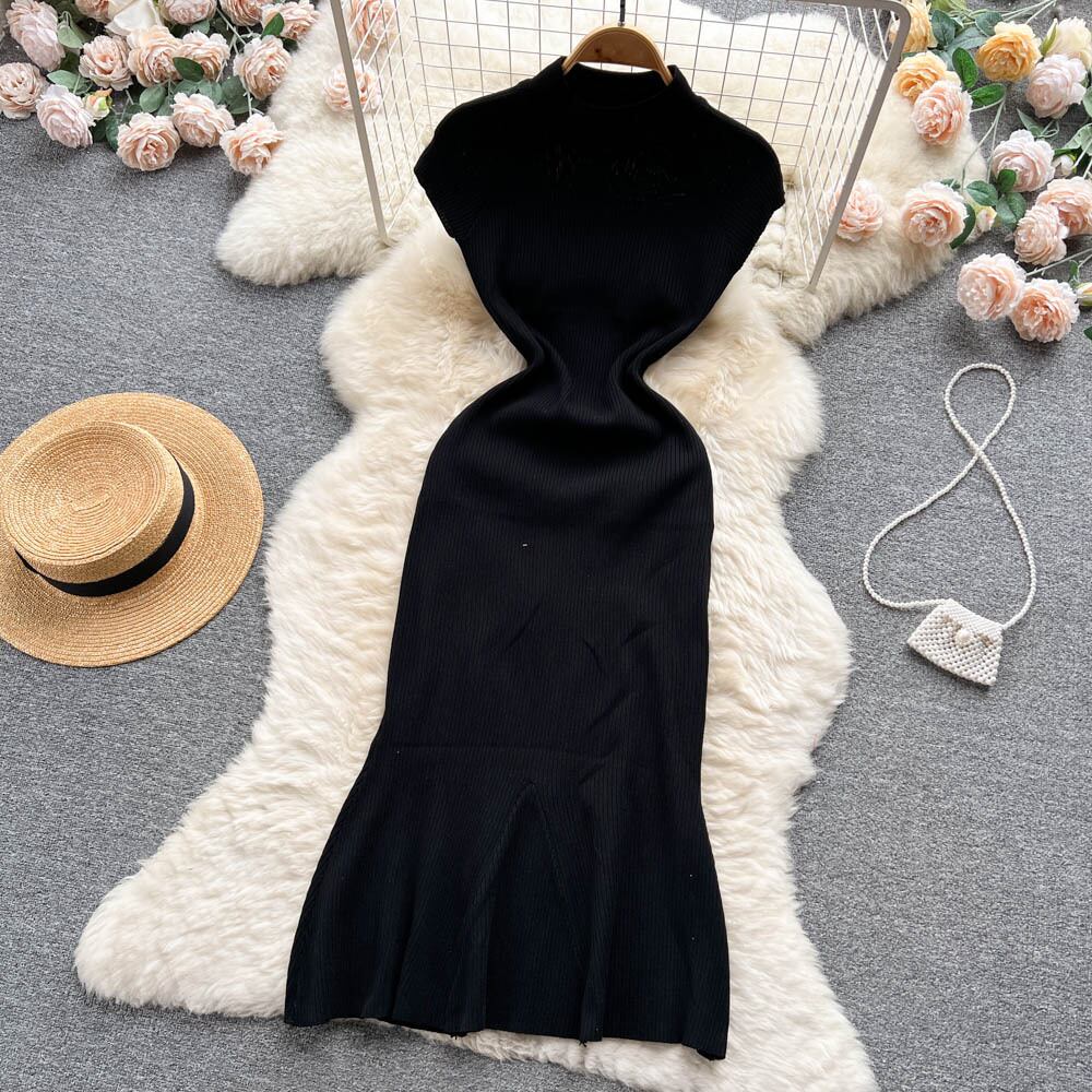 半袖無地ロングドレスoネック中空アウトスリムボディコンサンドレスホットスウィートニットビーチミディロングドレス ショート ハーフスリーブ 大人ガーリー キュート カジュアル ソリッドカラー