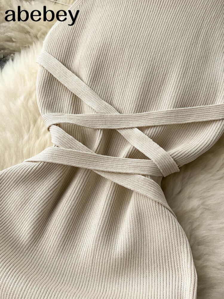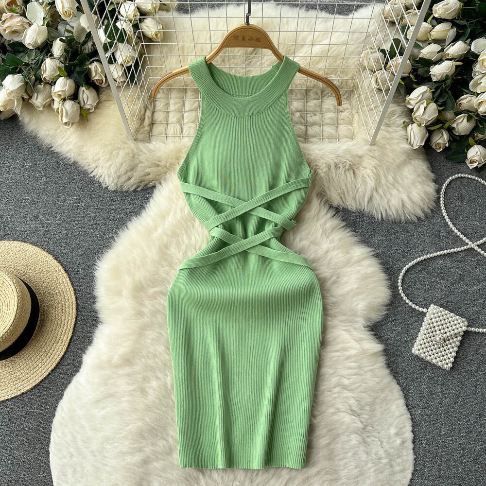 夏ホルターレースアップセクシードレス包帯スリムビーチサンドレスストリートニットボディコンドレス サマー 夏物