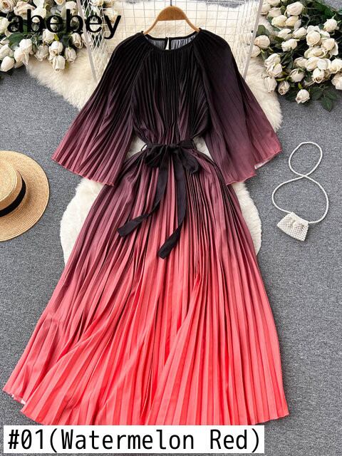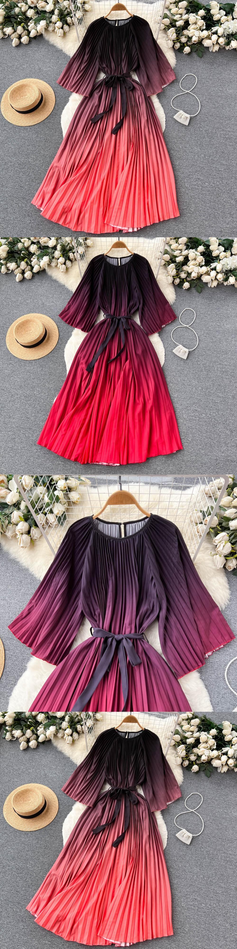 春夏スリークォータースピーカースリーブルーズフィットマキシドレスミヤケグラデーションカラープリーツドレス スプリング 春物 サマー 夏物