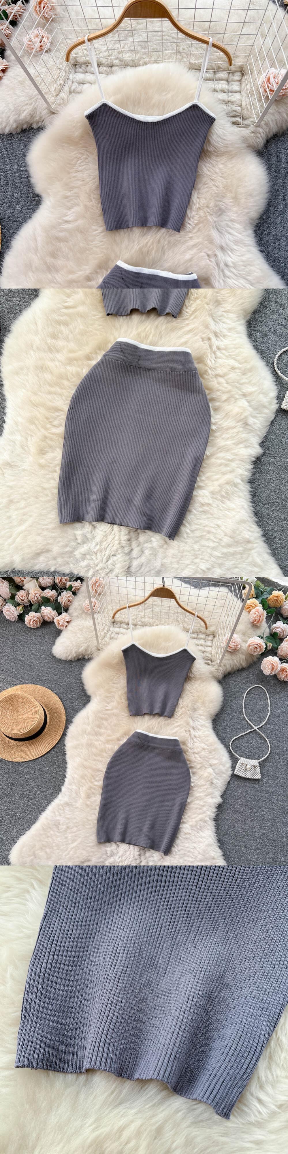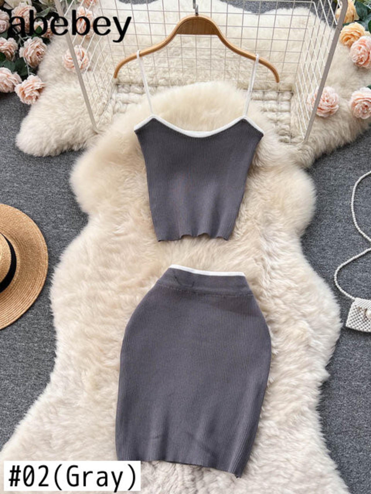 夏ニット中空アウトビーチスーツスリム背中開いたキャミソール + ミニスカート休暇セクシー二枚セット サマー 夏物