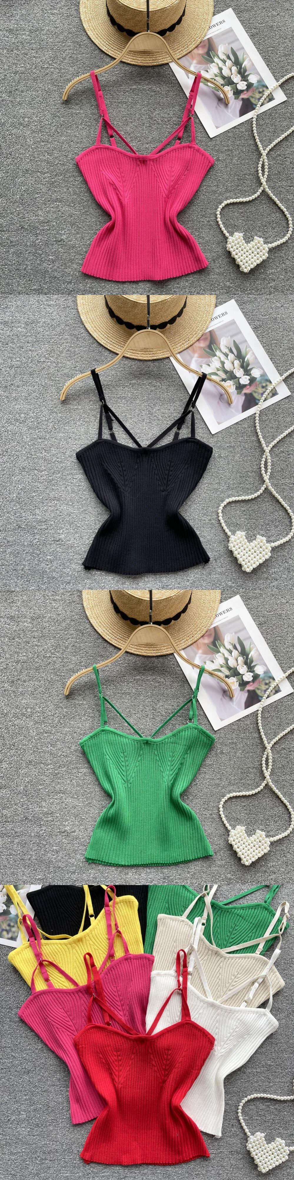 夏中空アウト レディース キャミソール トップス薄いニット ノースリーブ セクシートップス キャミソール服 サマー 夏物