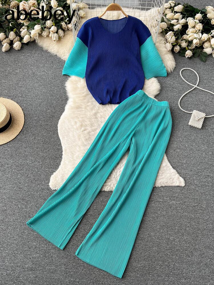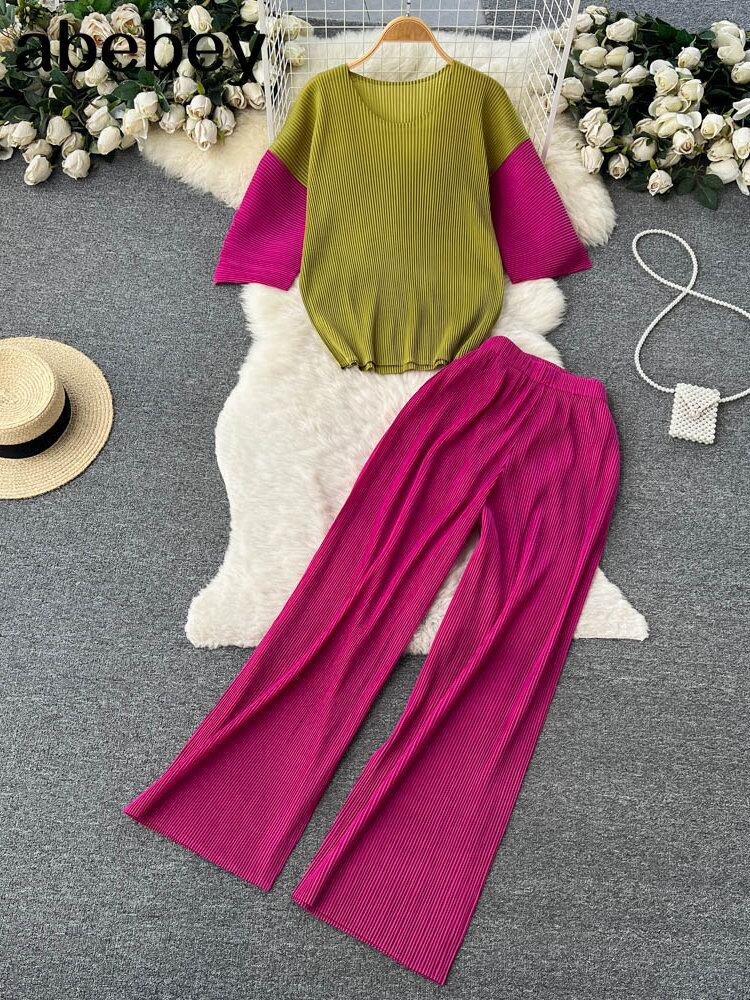 夏ルーススーツ中空アウト Tシャツ + ワイド脚長ズボンセット Hotsweet 二枚トラックスーツ ロング 大人ガーリー スウィート キュート カジュアル サマー 夏物 ワイドレッグ ワイドパンツ