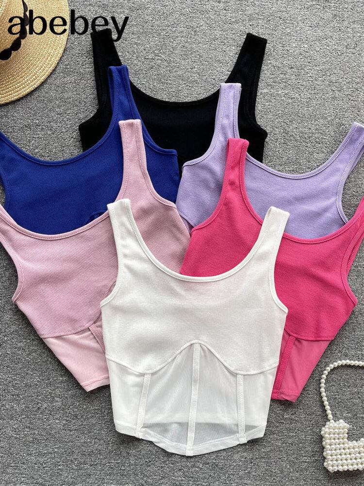 夏ソリッドコルセットセクシータンクトップノースリーブ背中開いたシック官能的トップストリートホットスウィートシアーメッシュキャミソール 大人ガーリー キュート カジュアル サマー 夏物 ソリッドカラー