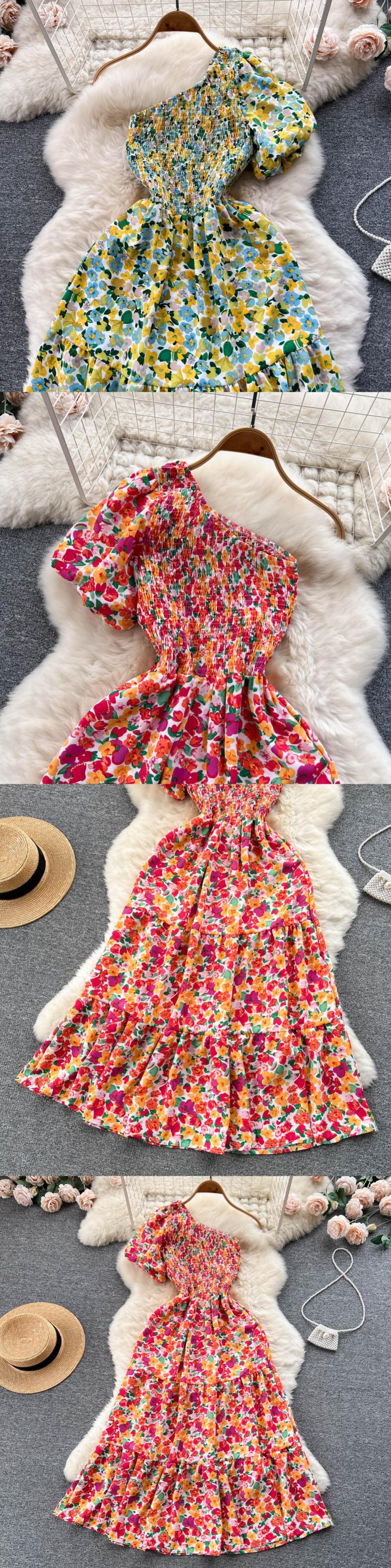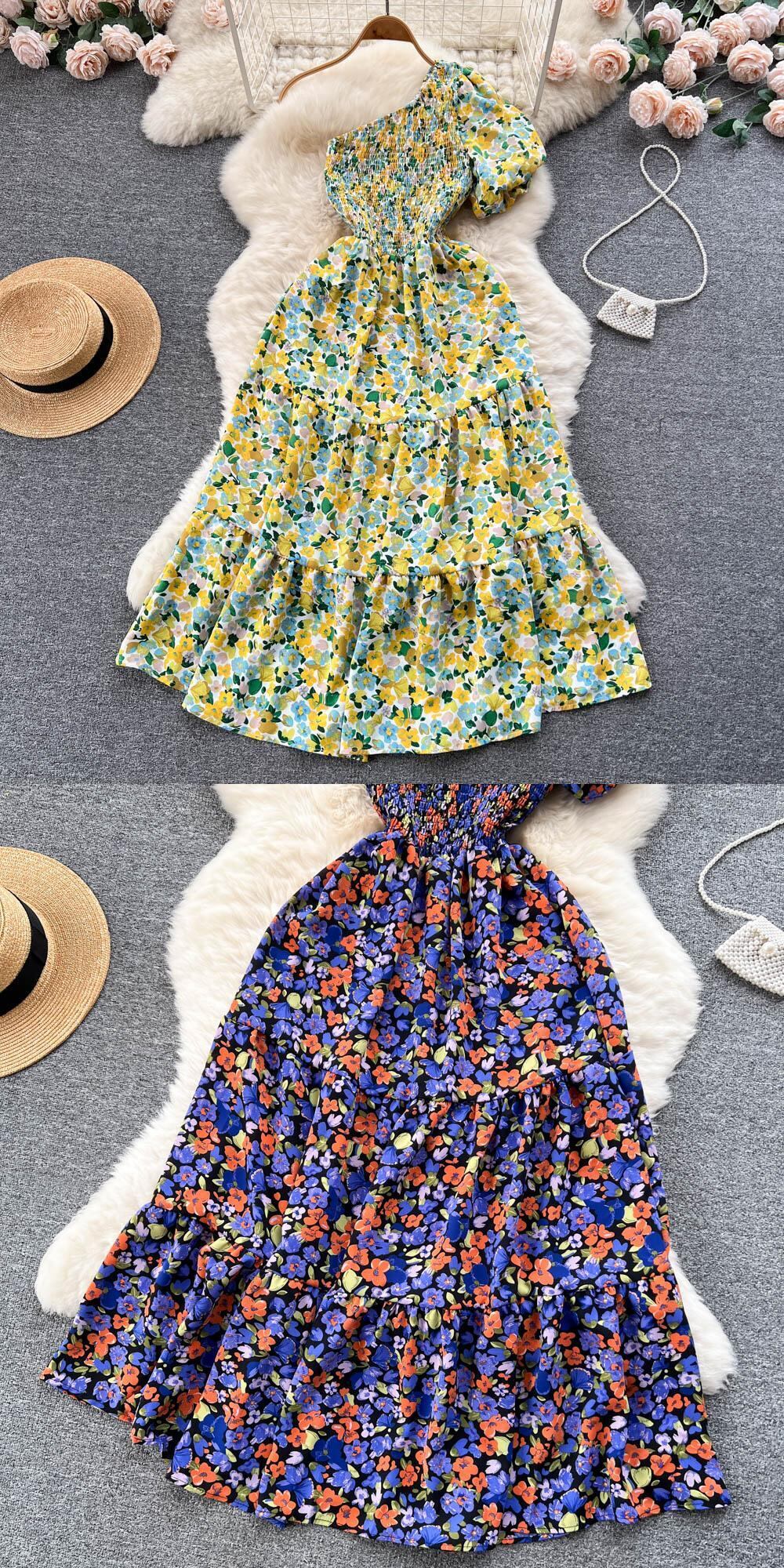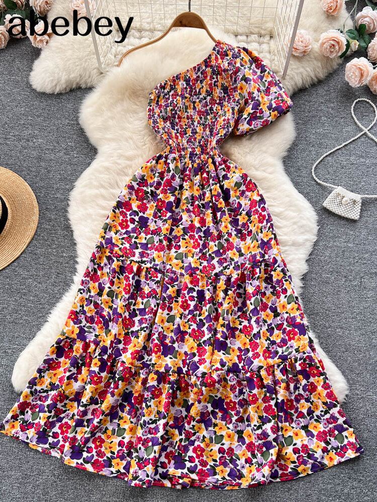 印刷 Flowral マキシドレス傾斜肩ノースリーブ A ラインローブ Partywear Vestidos Aライン