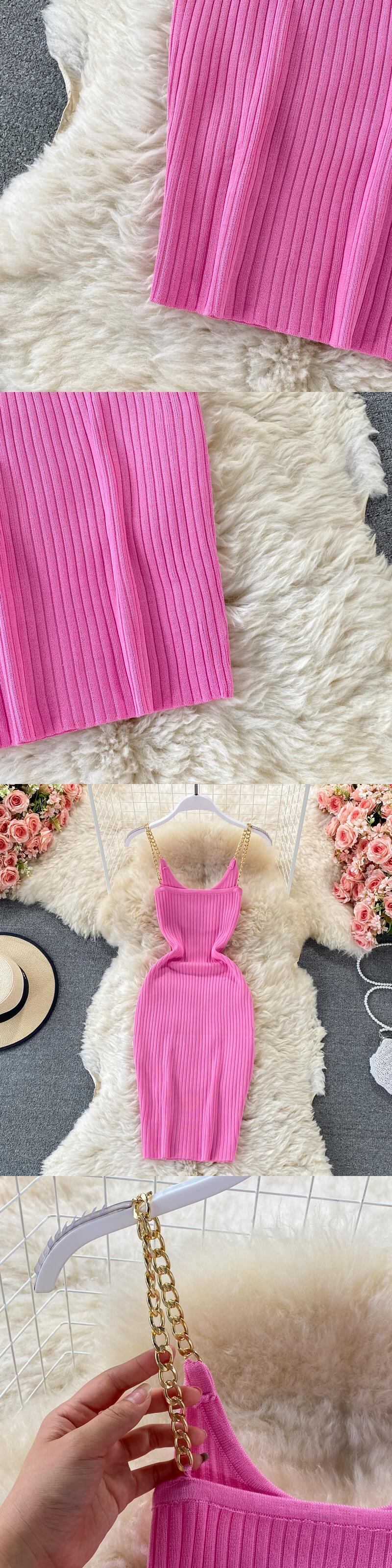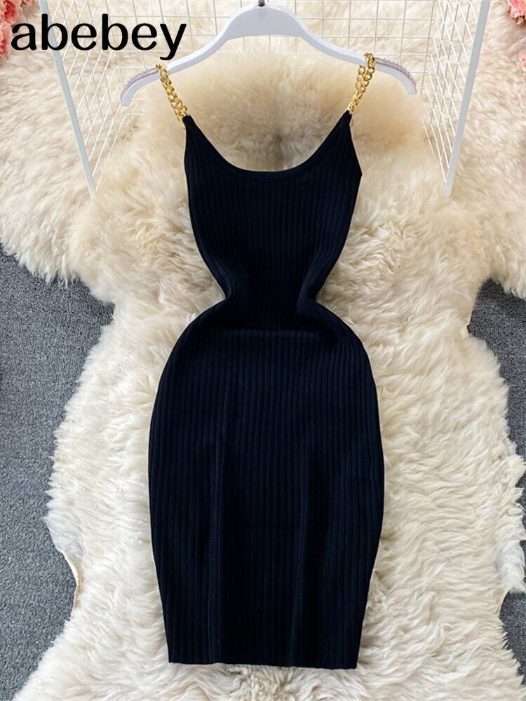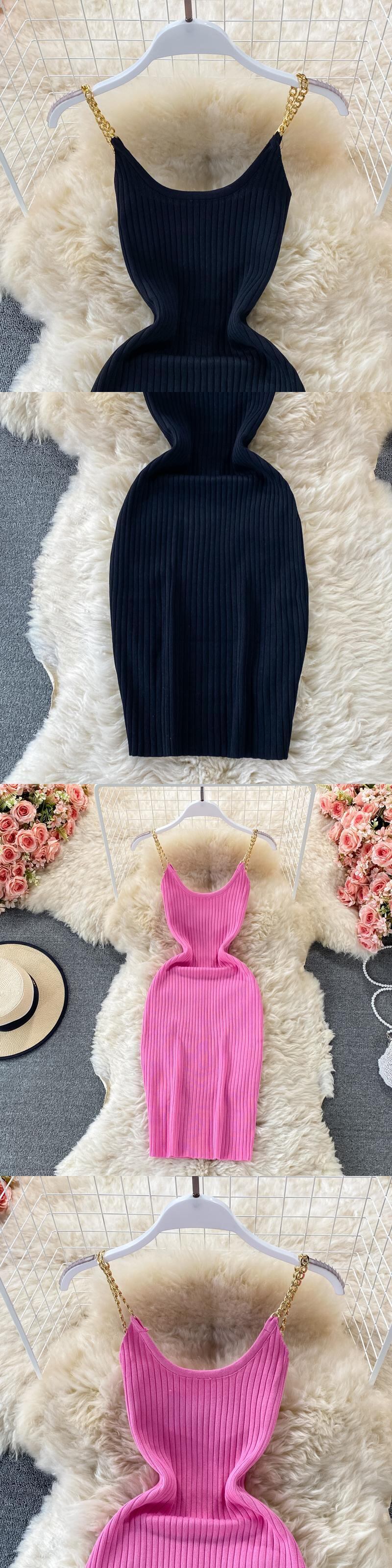ペンシルドレスタンクスリーブ O ネックボディコンセクシー Vestidos Kpop OL 弾性ニットサマードレス エラスティック 伸縮 夏物 Oネック