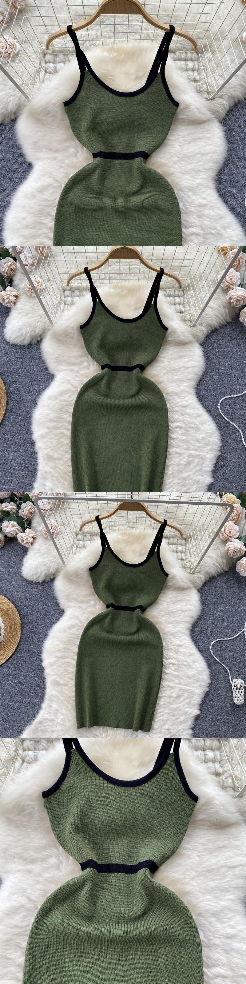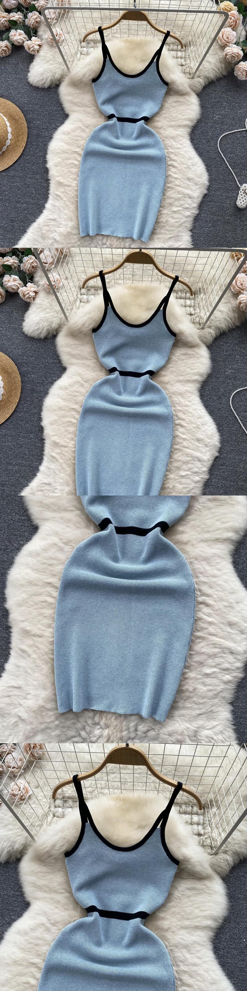 夏ニットセクシーストラップドレスエラティックウエストボディコンサンドレスビーチバックレスミディロングドレス サマー 夏物