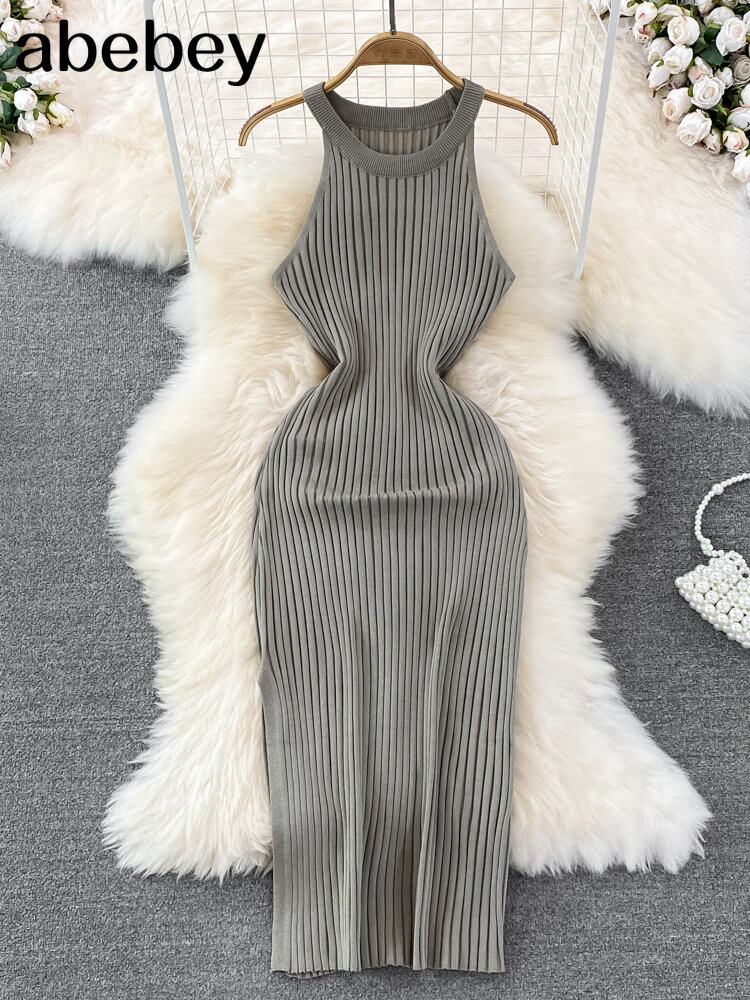 ニットボディコンドレスニットマキシドレスノースリーブ Sukienka Damska セクシー中空アウトカットアウト無料
