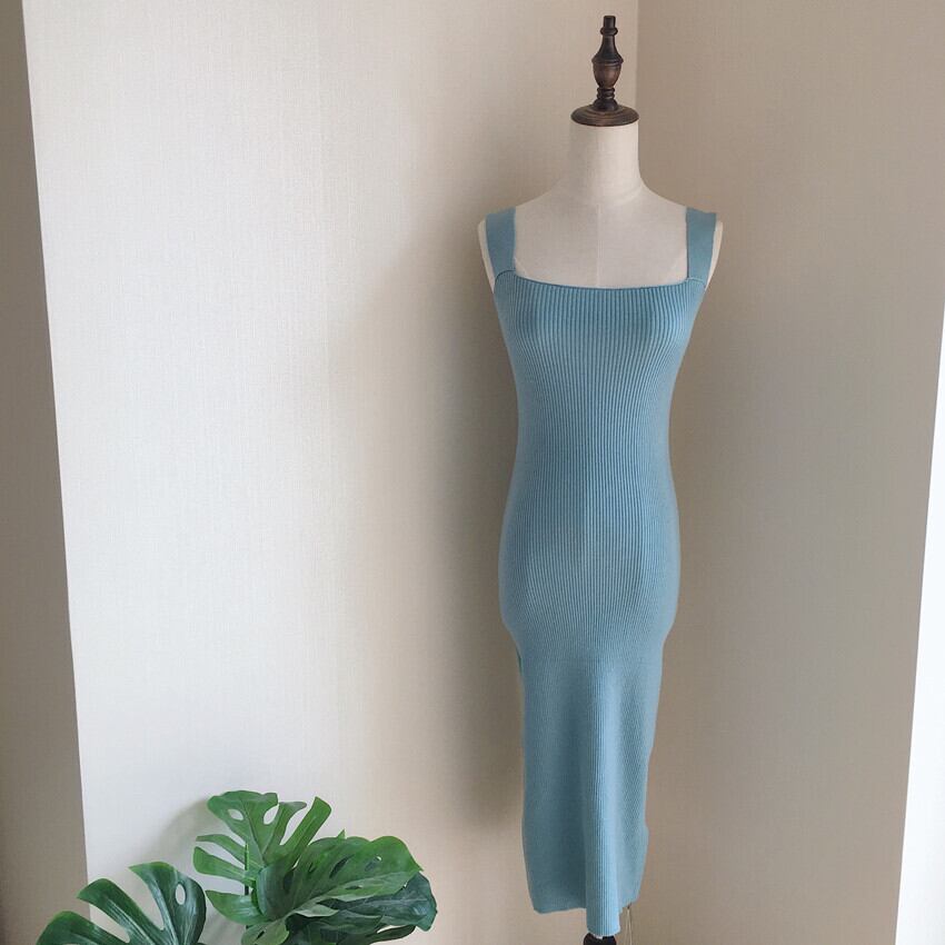 夏ニットセクシーストラップドレスタンクエラティックウエストボディコンサンドレスビーチバックレスロングドレス サマー 夏物