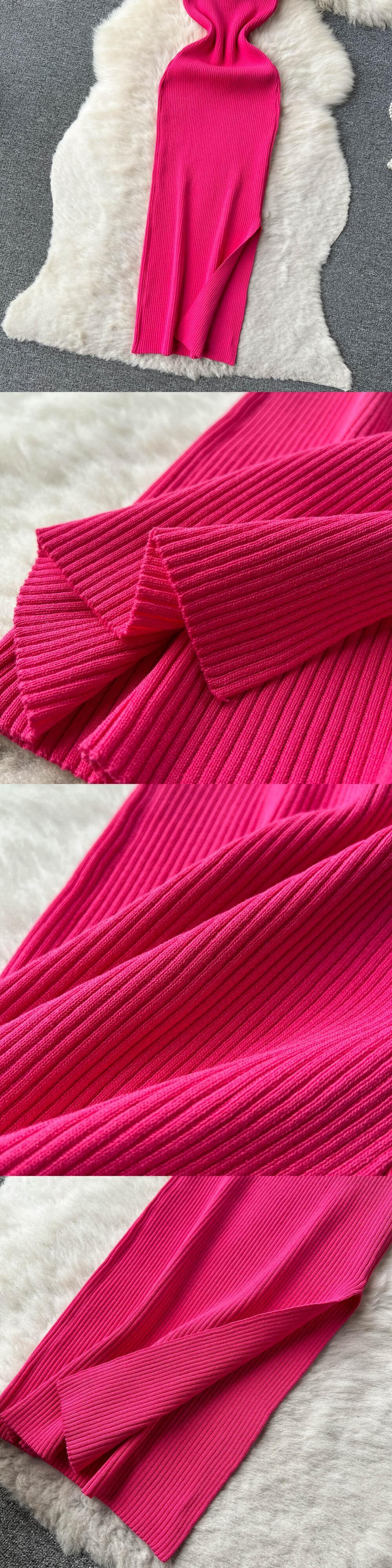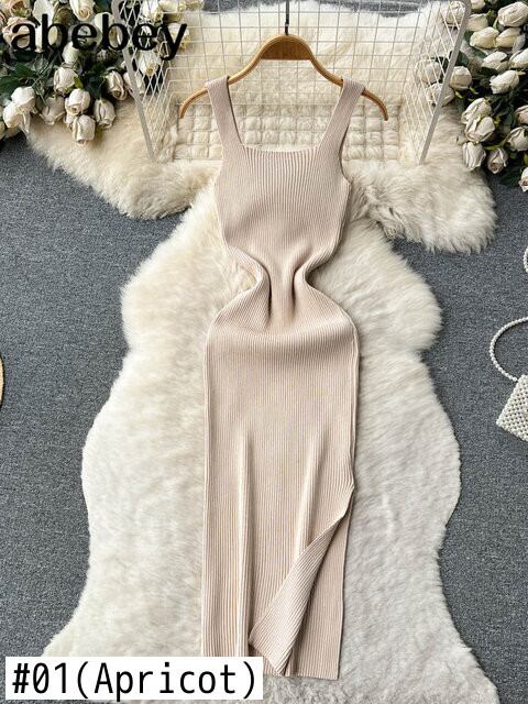 夏ニットセクシーストラップドレスタンクエラティックウエストボディコンサンドレスビーチスプリットバックレスロングドレス サマー 夏物