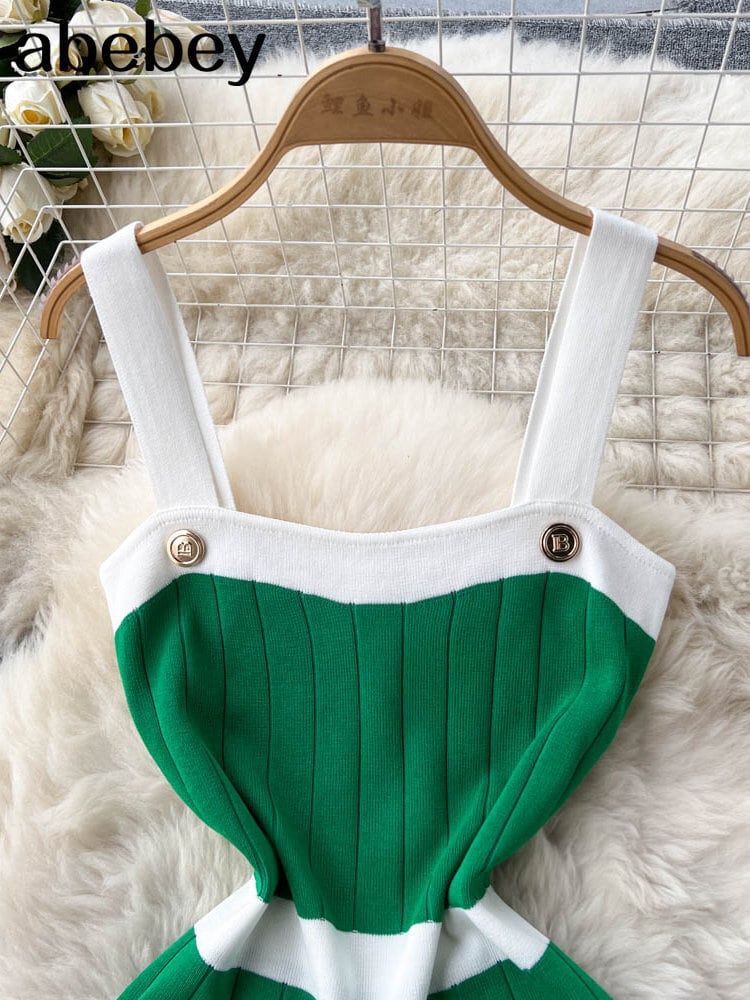 アメリカレトロニット タンク サンドレス ストライプ スリムシックボディコン夏シニア パーティー ビーチ ドレス サマー 夏物